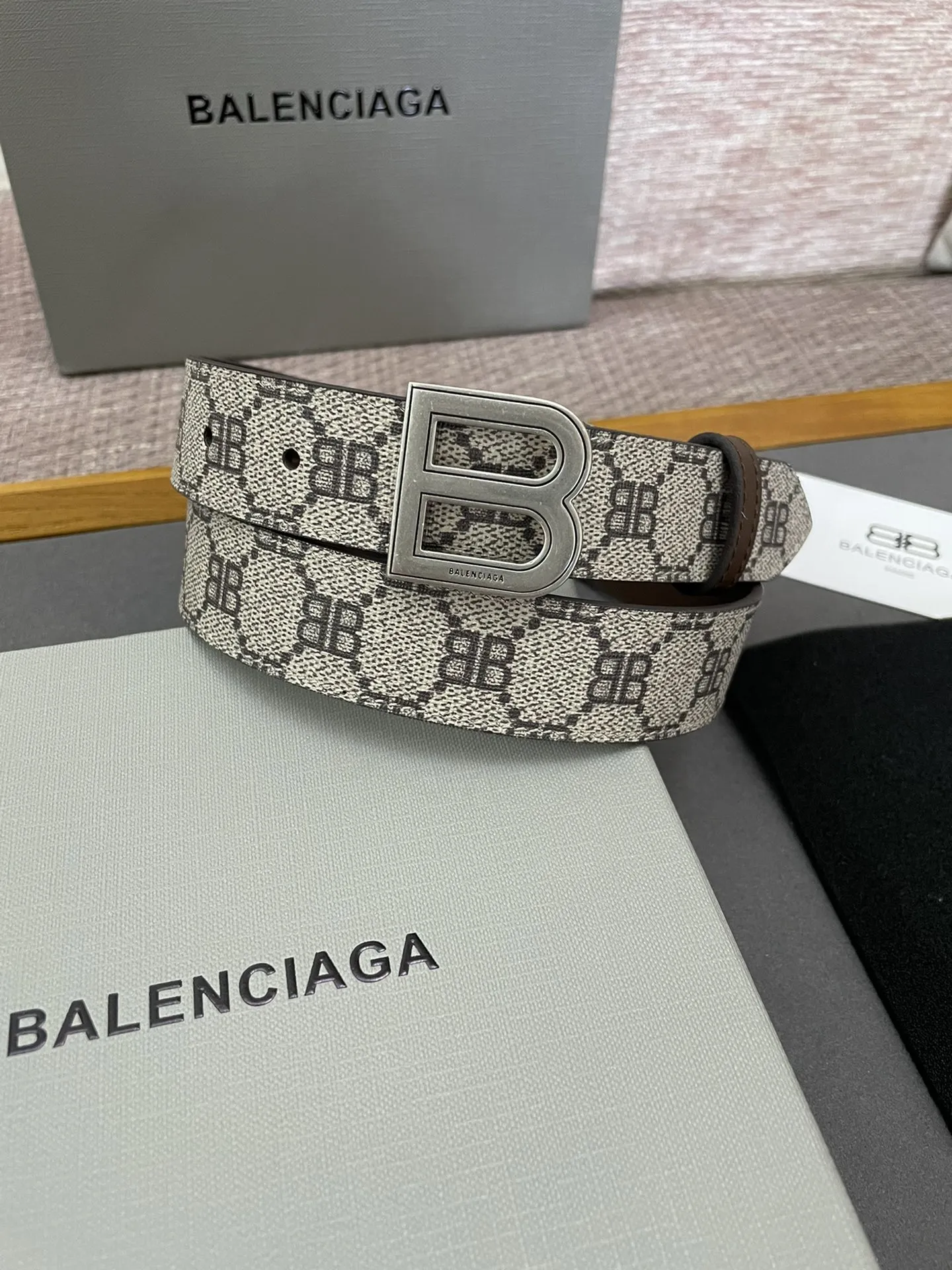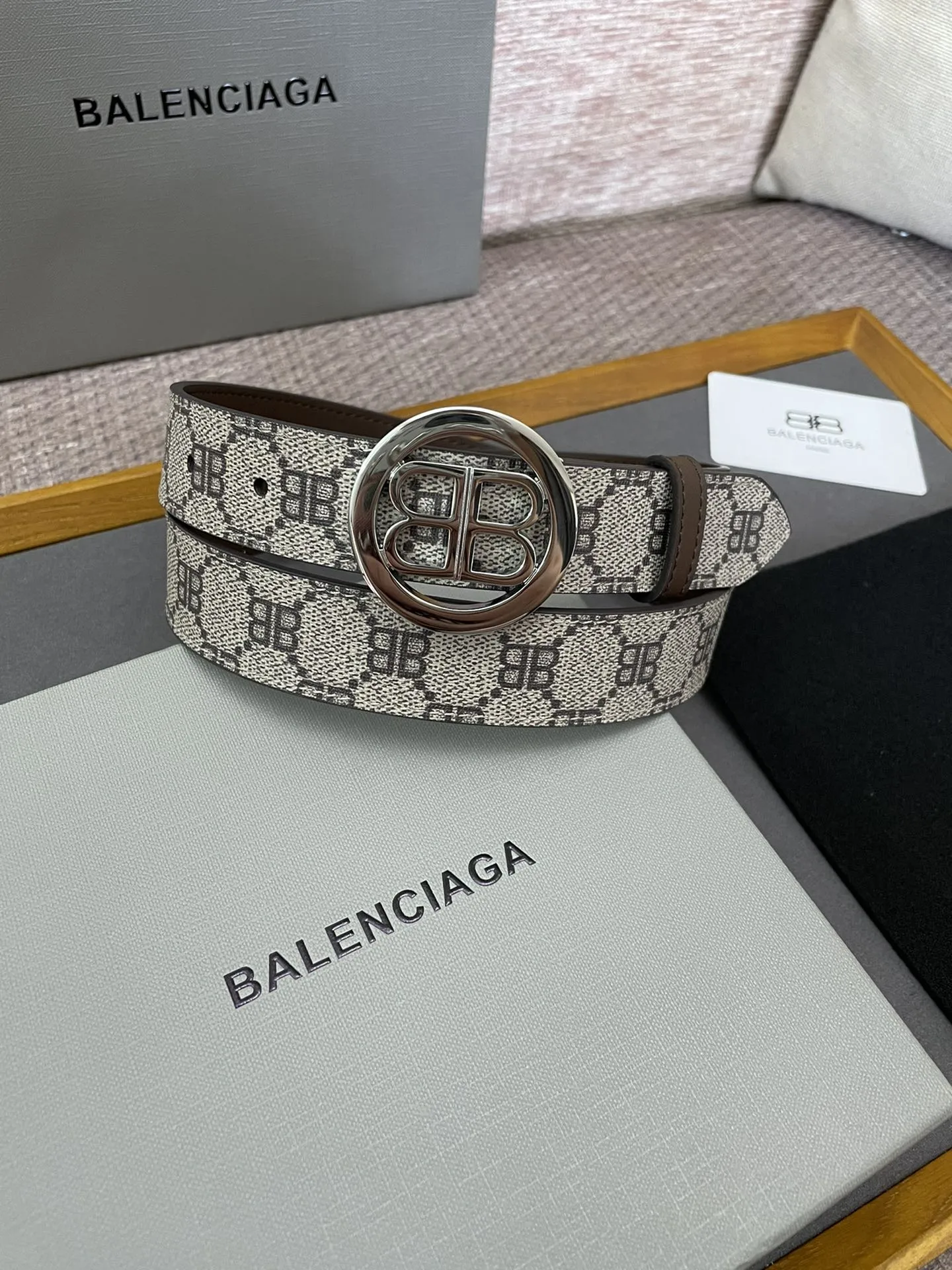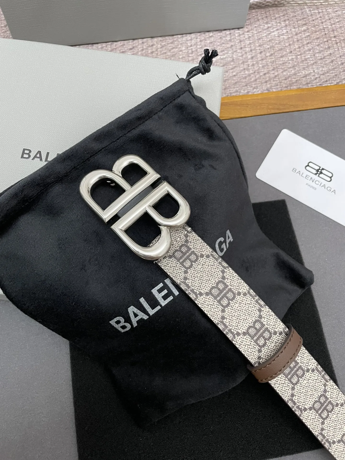 BALENCIAGA 新作ベルト シルバー BB柄 3cm幅