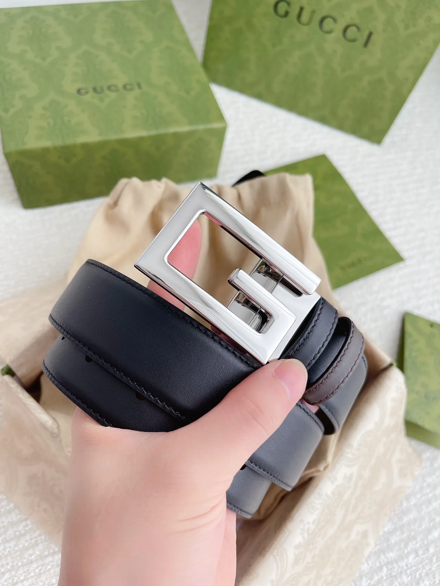 Gucci 新作 黒 方扣 男士腰帯 3.5cm