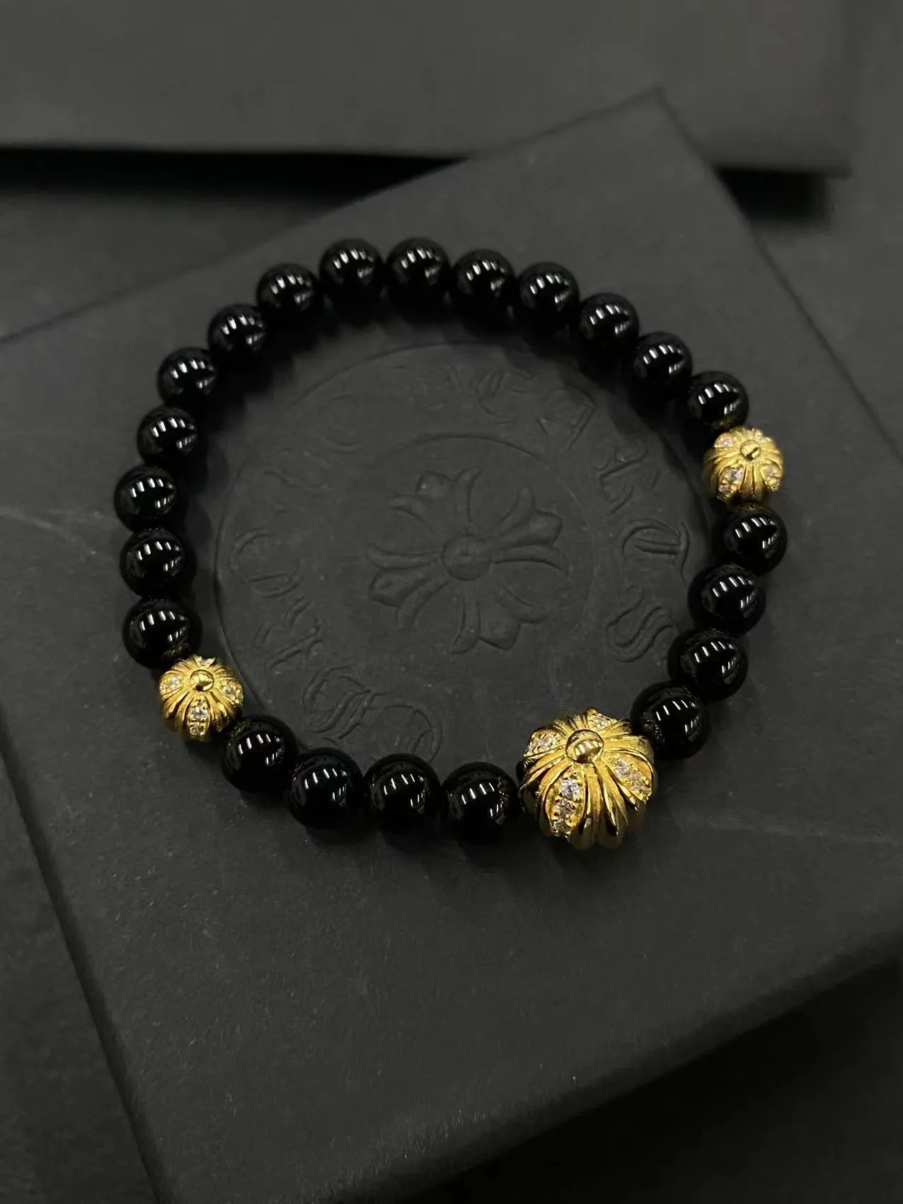 Chrome Hearts ブラックオニキス4ビーズブレスレット