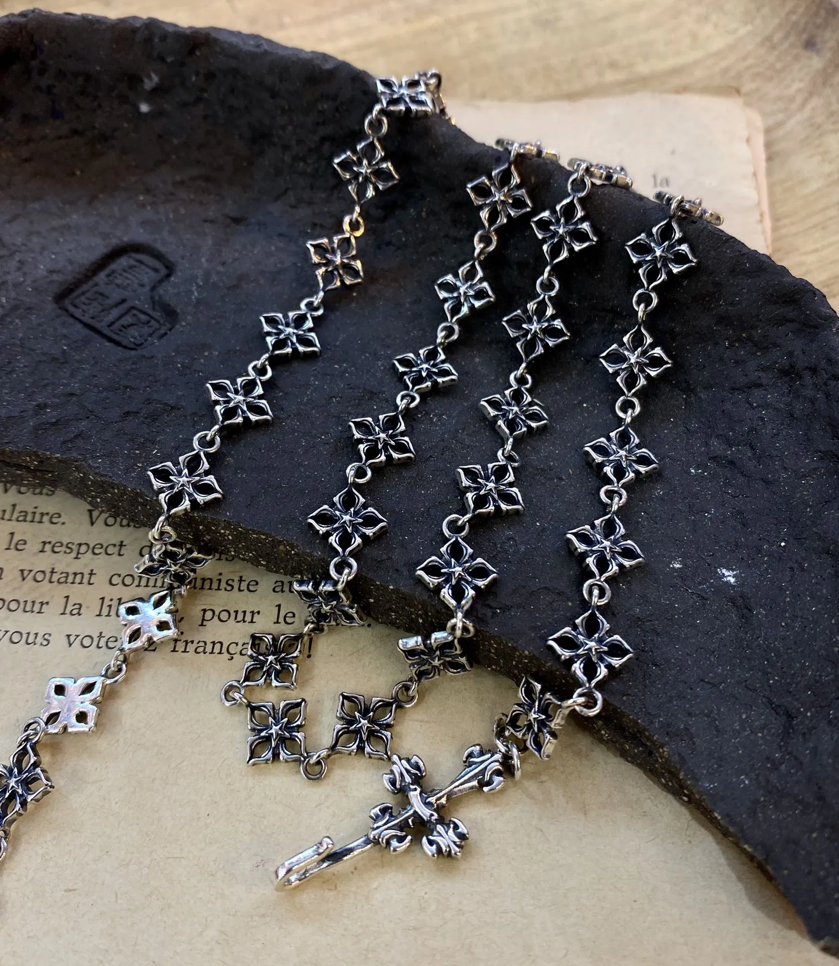 Chrome Hearts シルバー中号十字花手链レトロデザイン