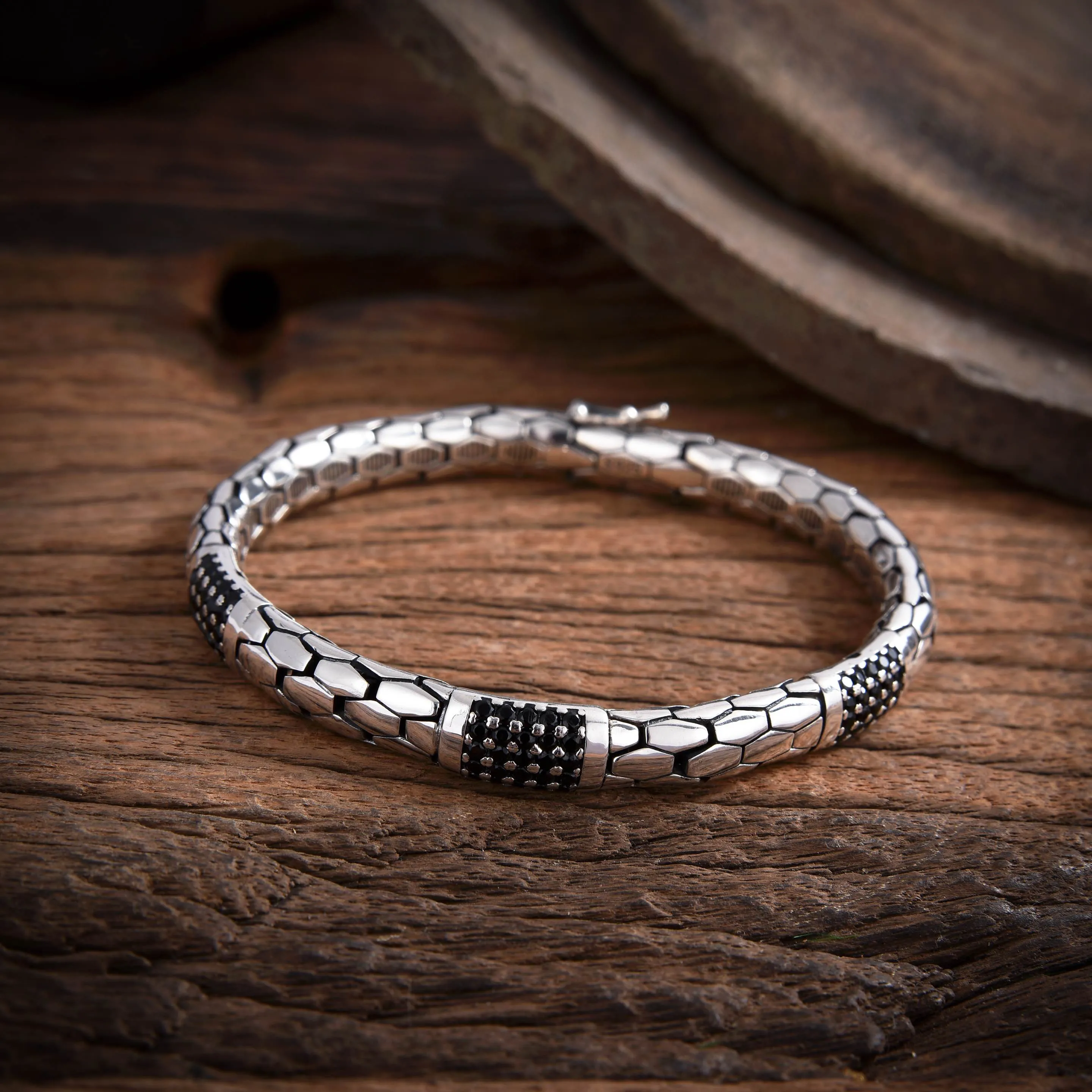 セイコーデザイン 蛇紋黒ダイヤモンドメンズブレスレット シルバー