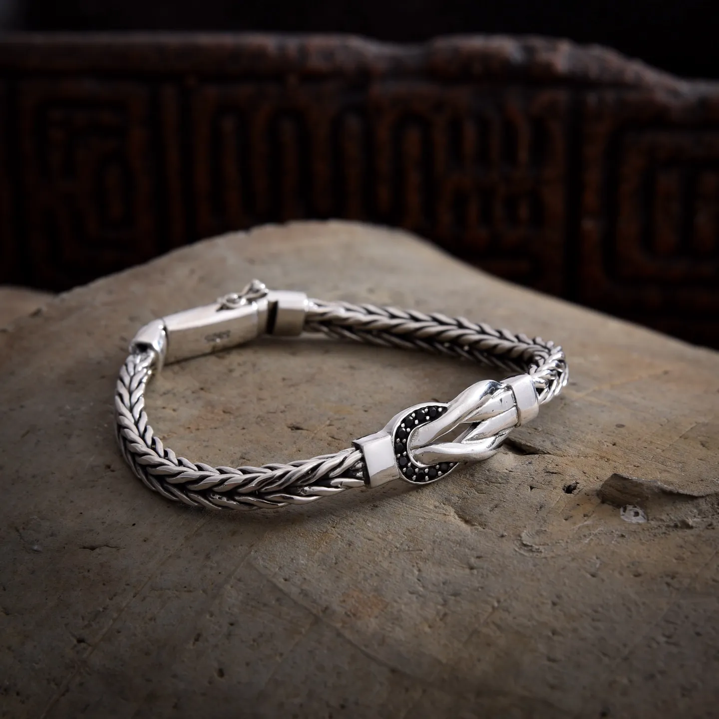 オリジナルデザイン連結黒ダイヤモンド男性手編みブレスレットシルバー6mm