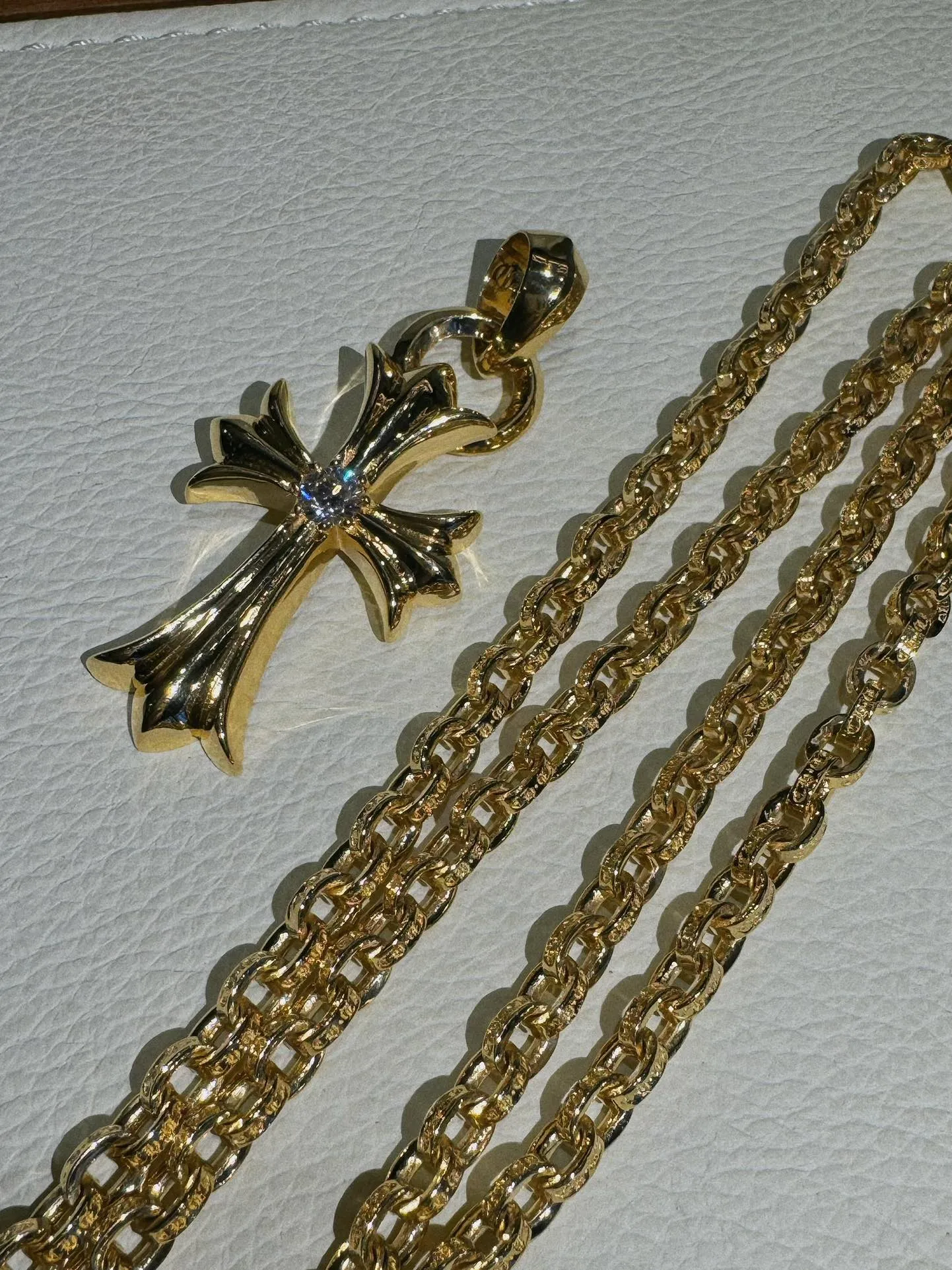 Chrome Hearts 22K純金クロスダイヤネックレス