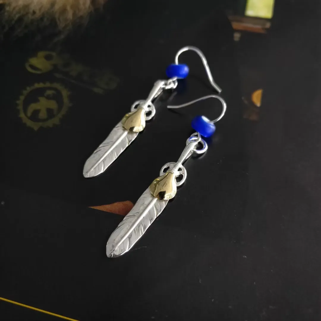 高橋ブランドシルバーフェザーイヤリングブルー