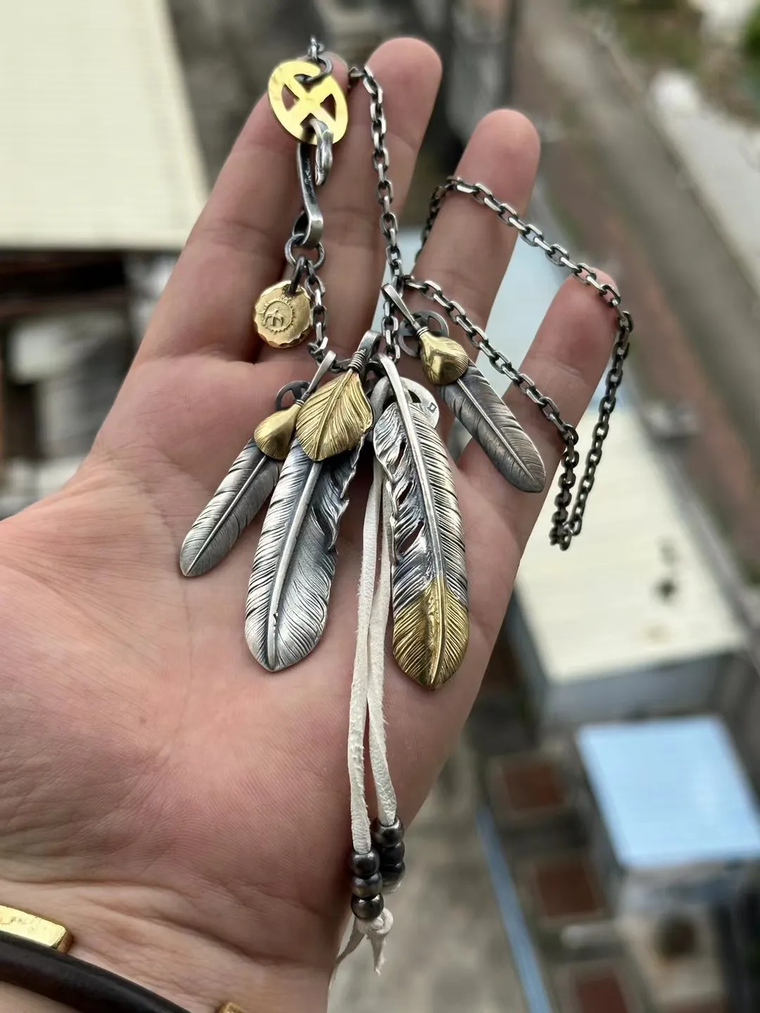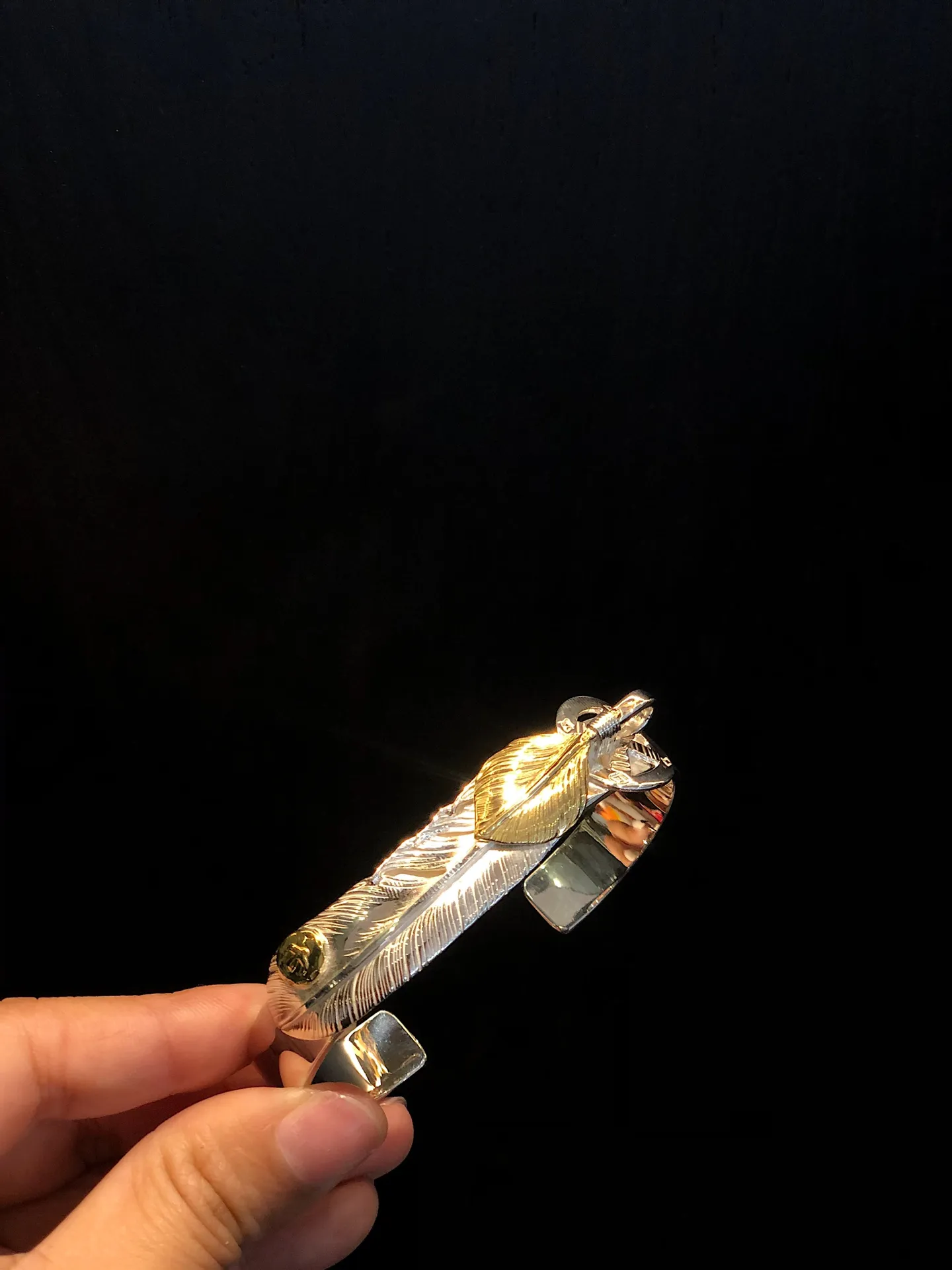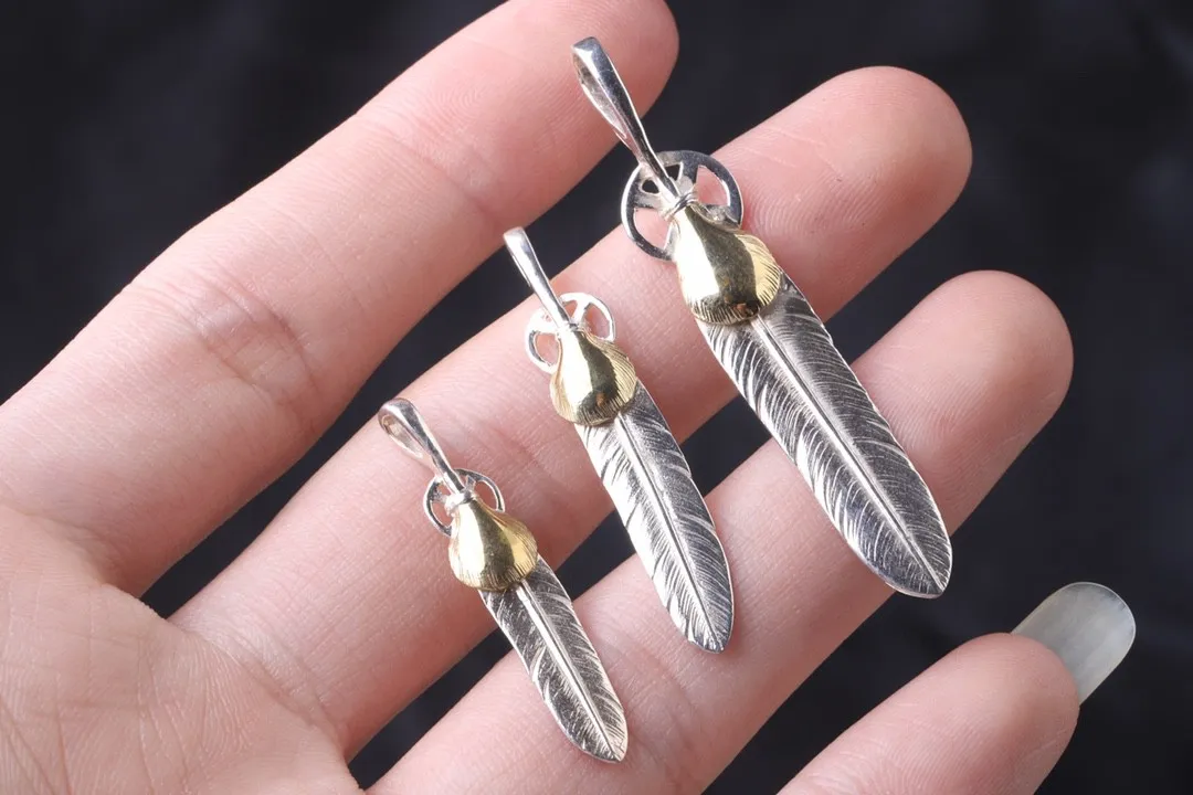 高橋羽毛シルバー羽ペンダントゴールドアクセント