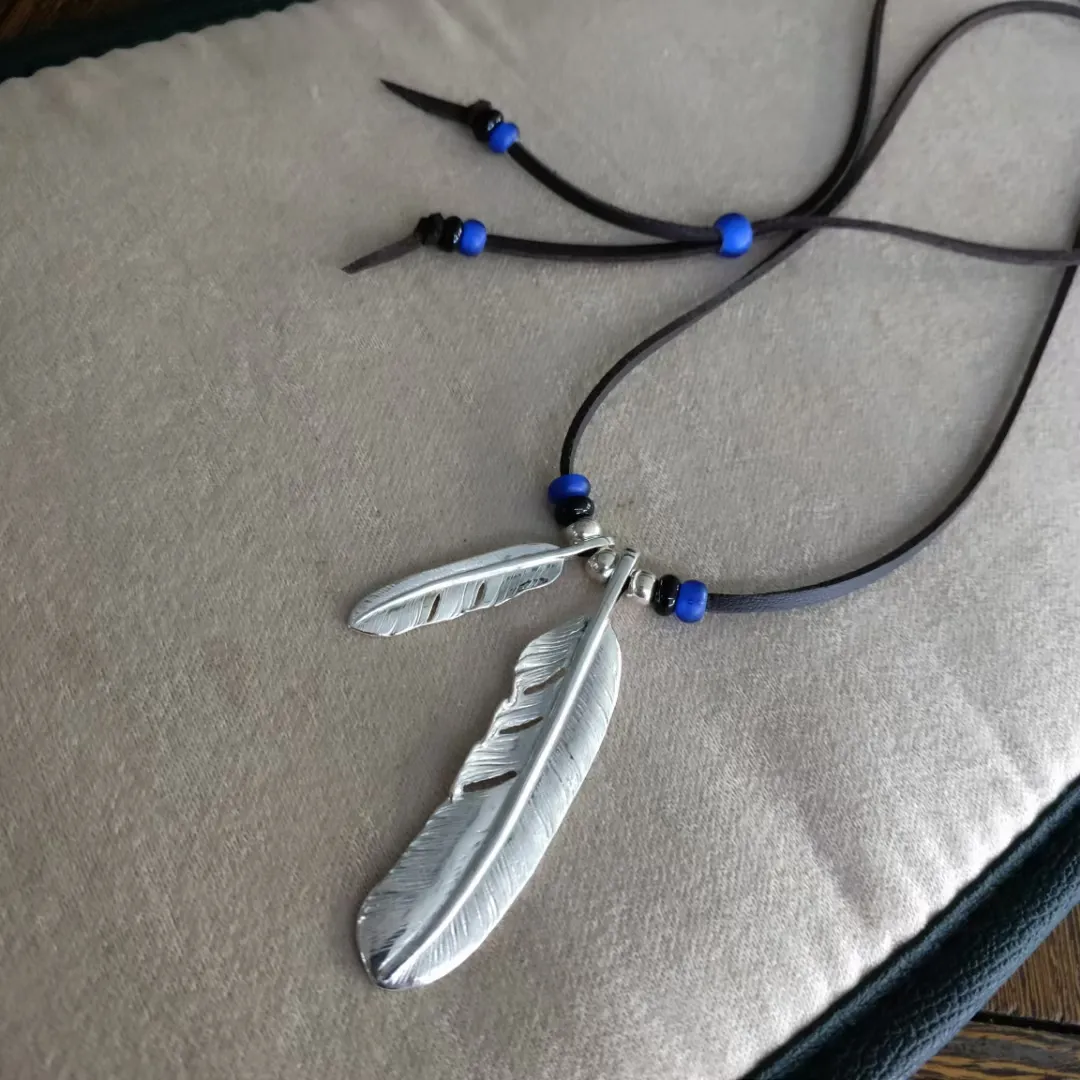 高橋ネックレス シルバー羽根 ブラウンレザー
