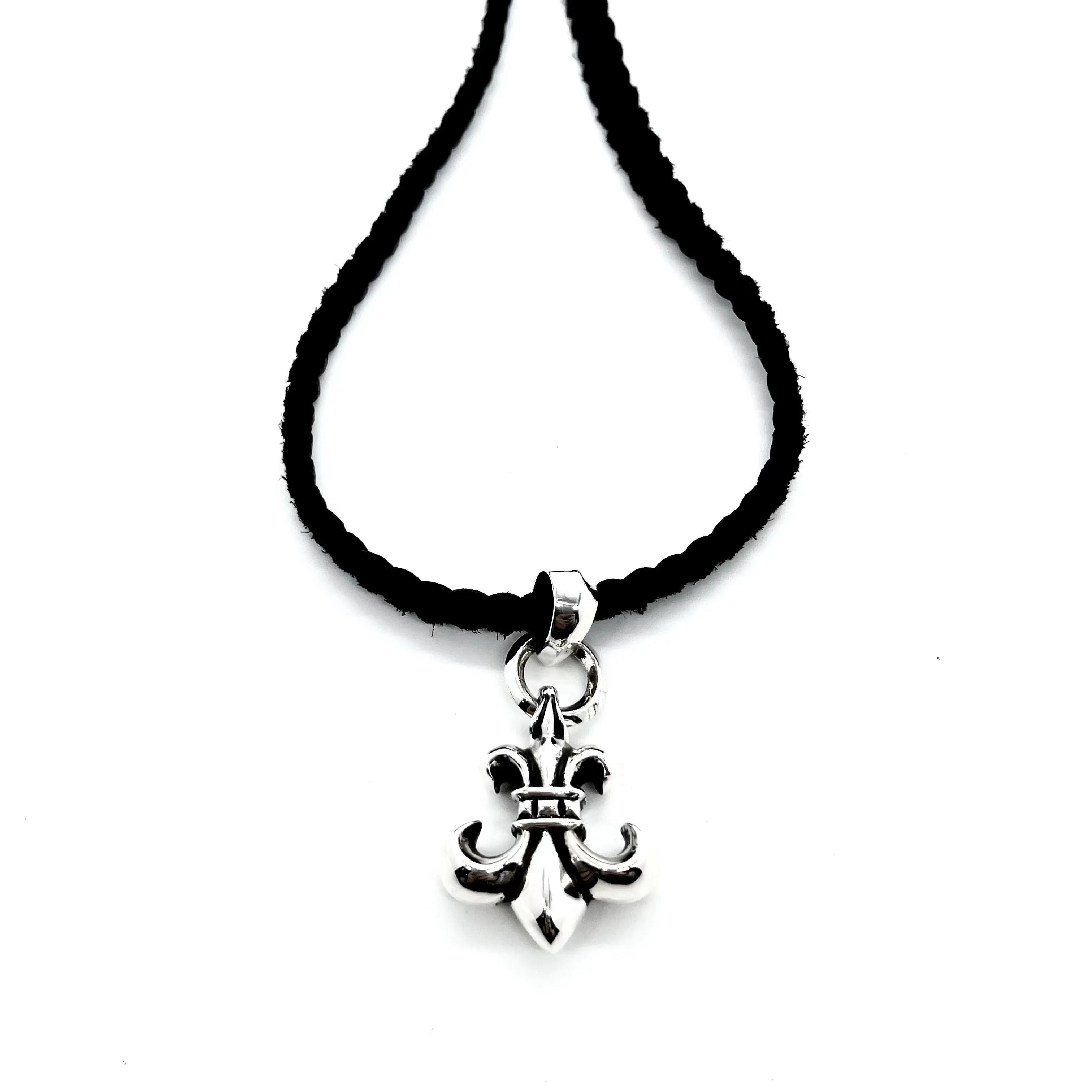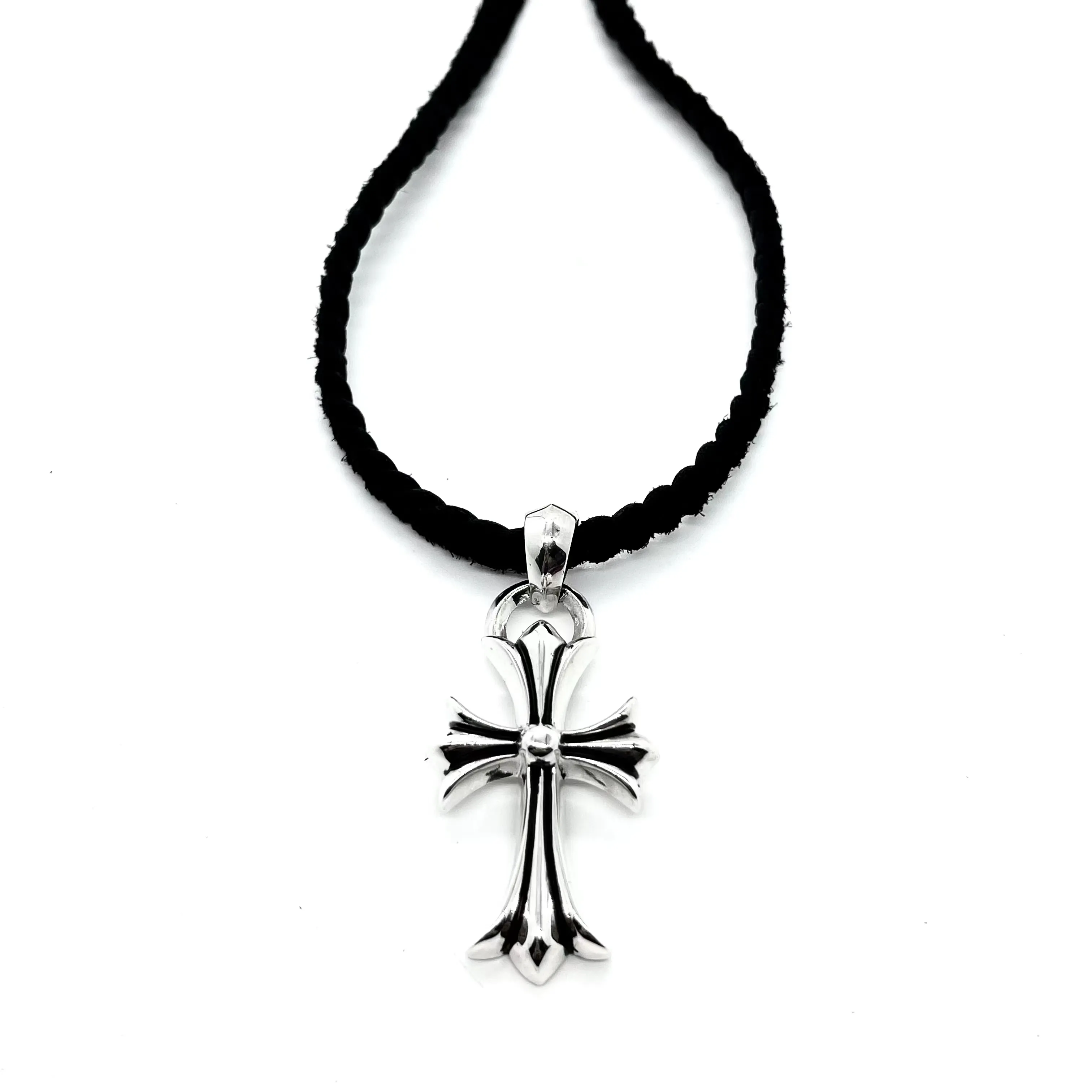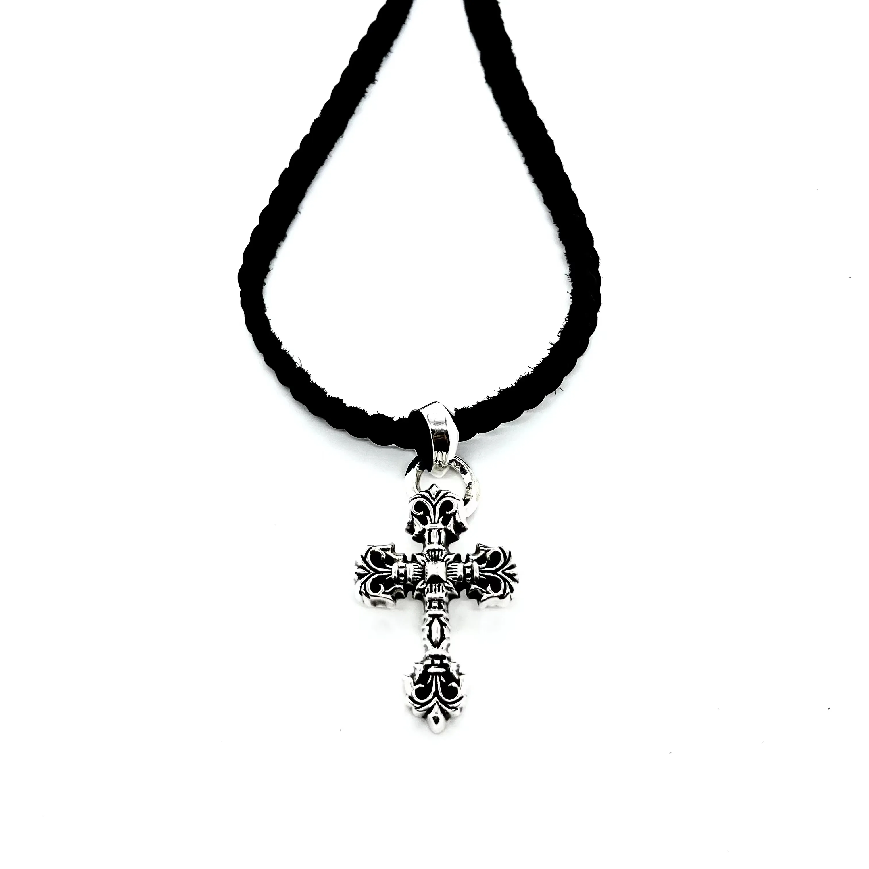 Chrome Hearts クロムハーツ 黒 皮紐編み十字架ネックレス