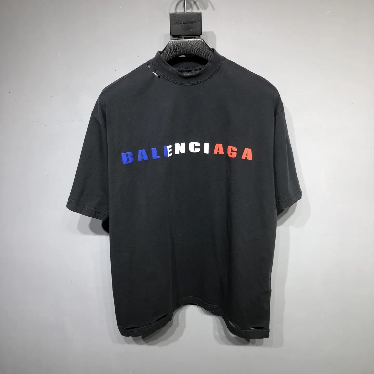 BALENCIAGA 黒 裂け目ロゴTシャツ