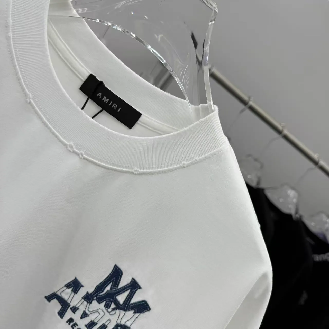 AMIRIの2025秋冬コレクションから登場したこの半袖Tシャツは、牛仔面料の贴布绣花と洗水磨破デザインが特徴です。320克の厚手素材を使用し、男女兼用で宽松なフィット感が魅力。黒と白の2色展開で、トレンドを意識したスタイリッシュな一枚です。おしゃれな Tシャツ スーパーコピー をお探しの方にもおすすめのアイテムです。