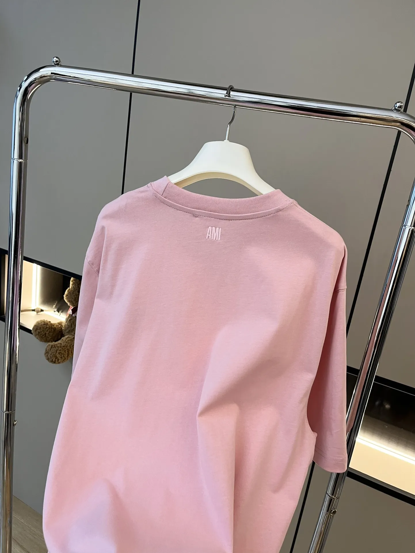AMIの新作ピンク愛心半袖Tシャツは、クラシックなマカロンカラーのデザインが特徴です。パリのエッフェル塔を思わせる「A」のロゴに愛心が乗ったデザインが非常に可愛らしいです。ミニマリストデザインで高級感があり、肌色を選ばない低彩度カラーが魅力。男女兼用で、多くのセレブやインフルエンサーにも愛用されています。サイズはSからXLまで揃っており、価格はP170です。トレンドを押さえた Tシャツ スーパーコピー スタイルをお探しの方にもおすすめです。