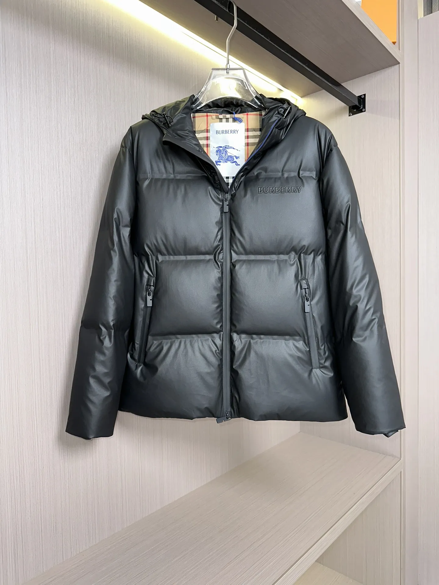 バーバリー 冬用ダウンジャケット フード付き ブラック