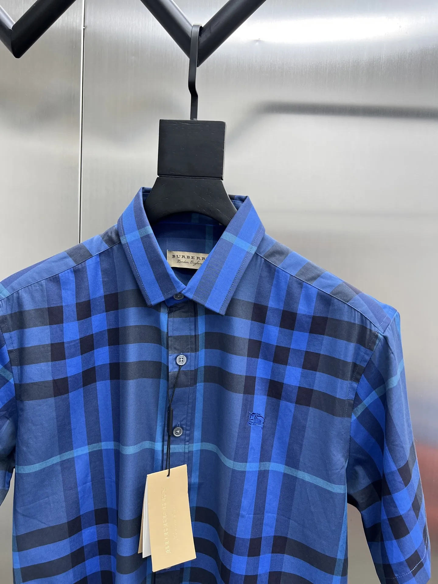 バーバリーニュー作黒チェックシャツ