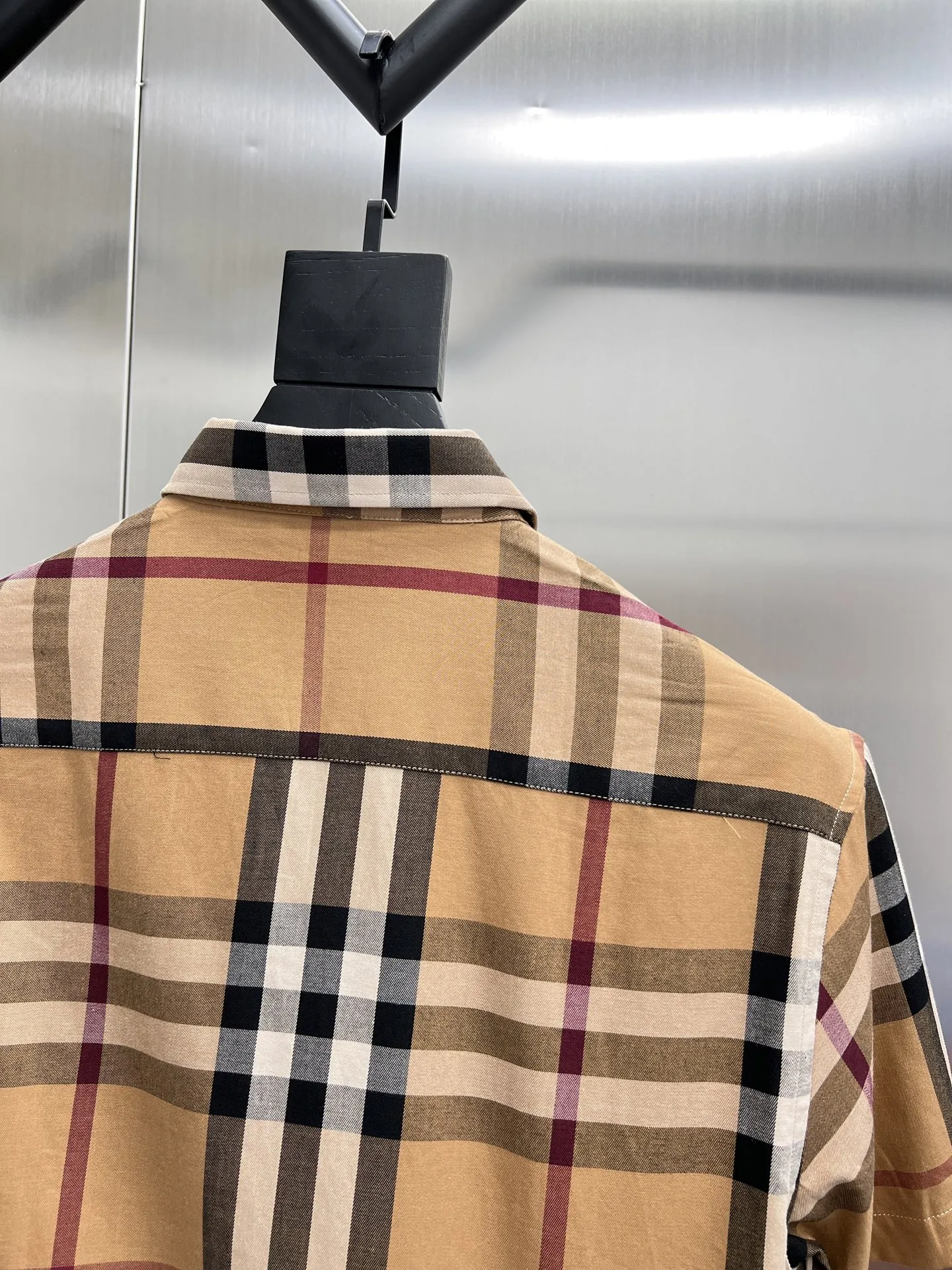 Burberry新作黒のチェック柄半袖シャツ