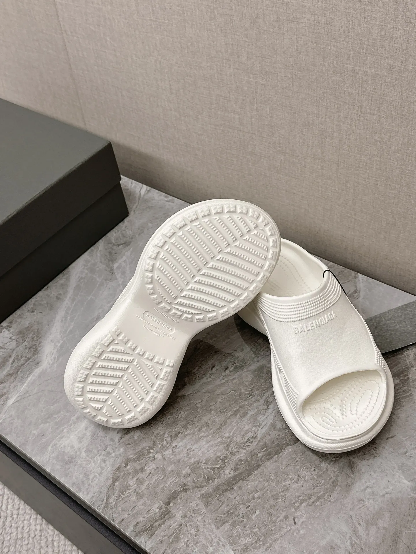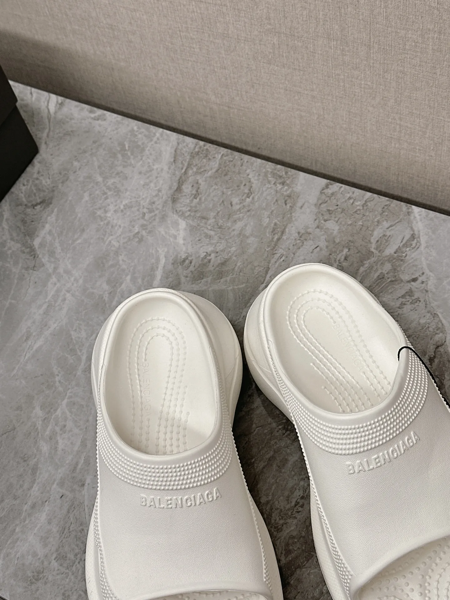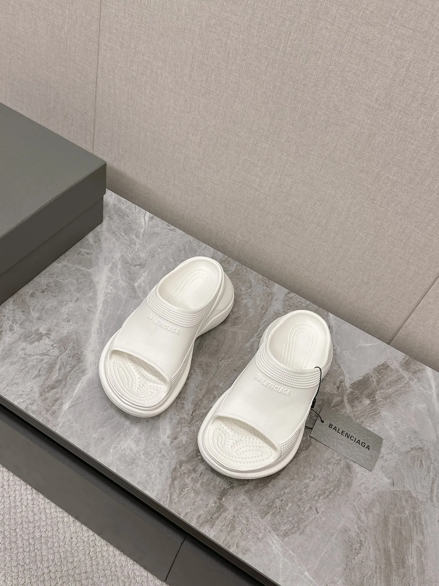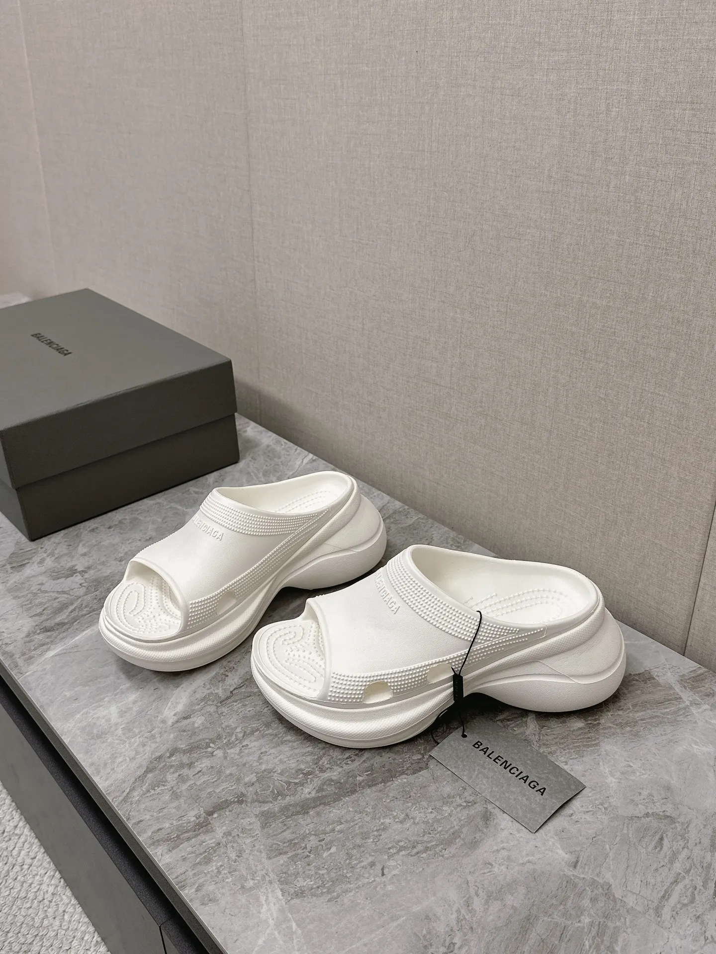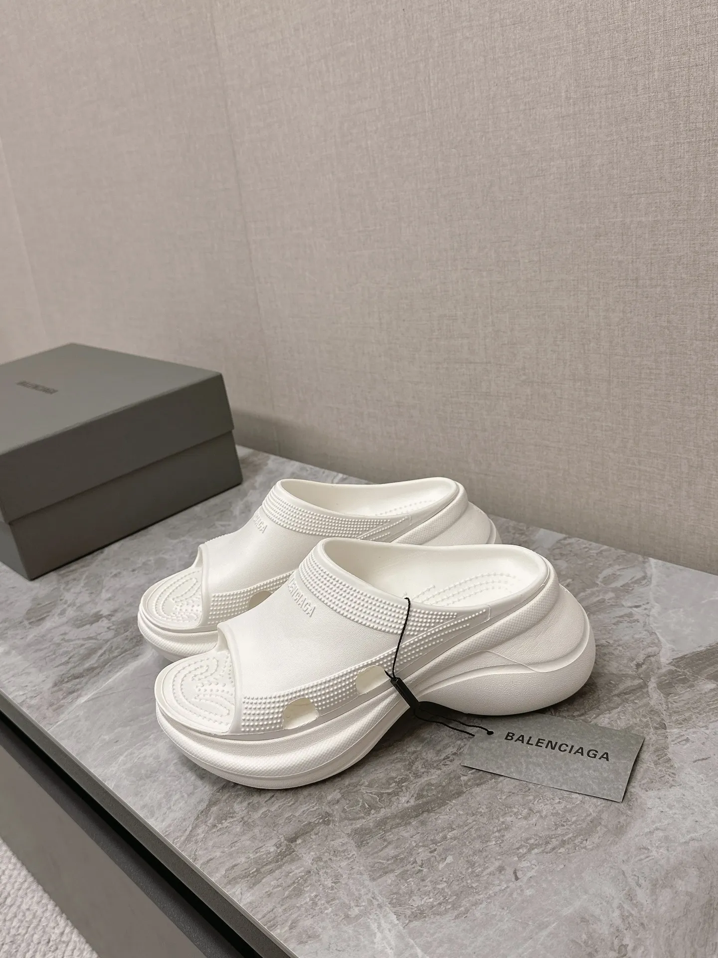 Balenciaga新作厚いソールウェッジスリッパ白