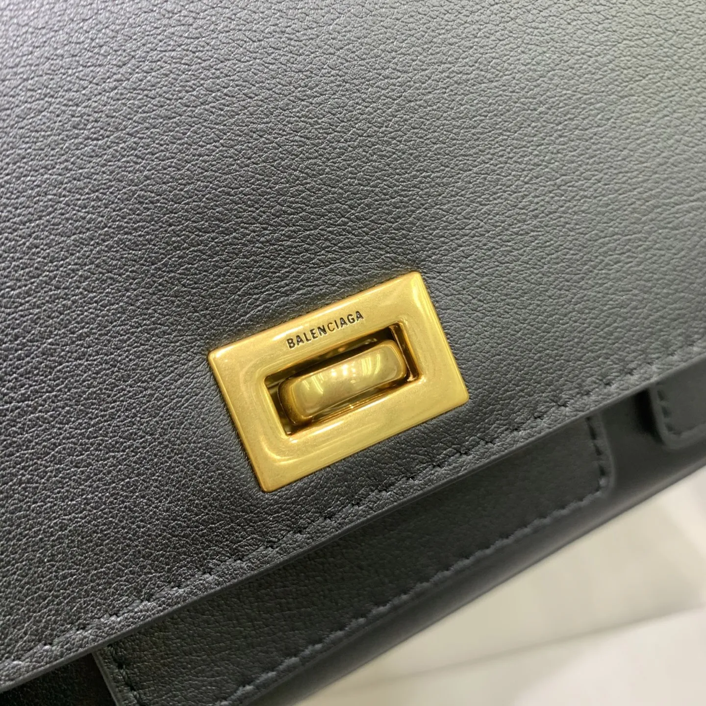 Balenciaga Bel Air 中サイズブラックゴールドハンドバッグ