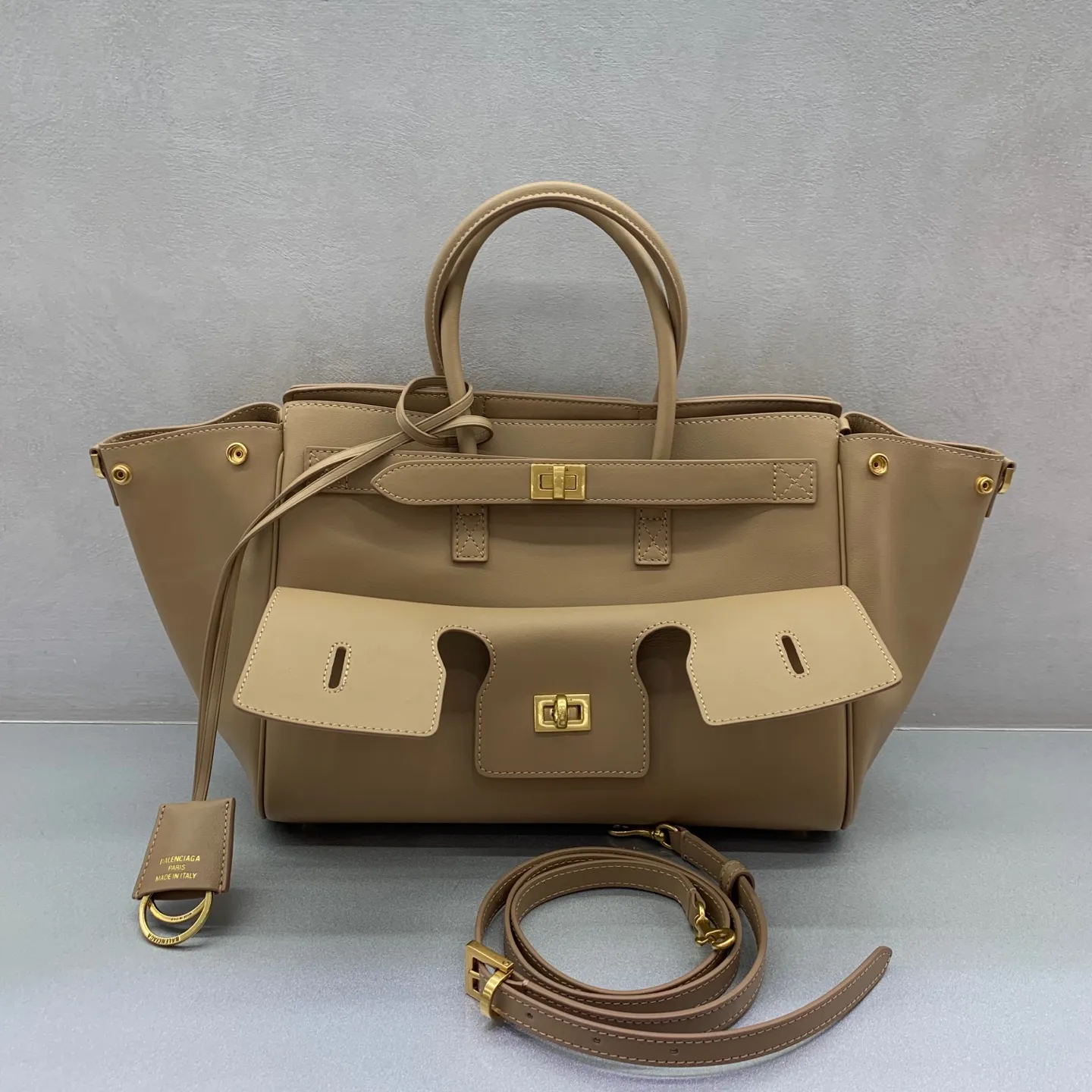 Balenciaga Bel Air ゴールドバックル付きの小さなアプリコットバッグ