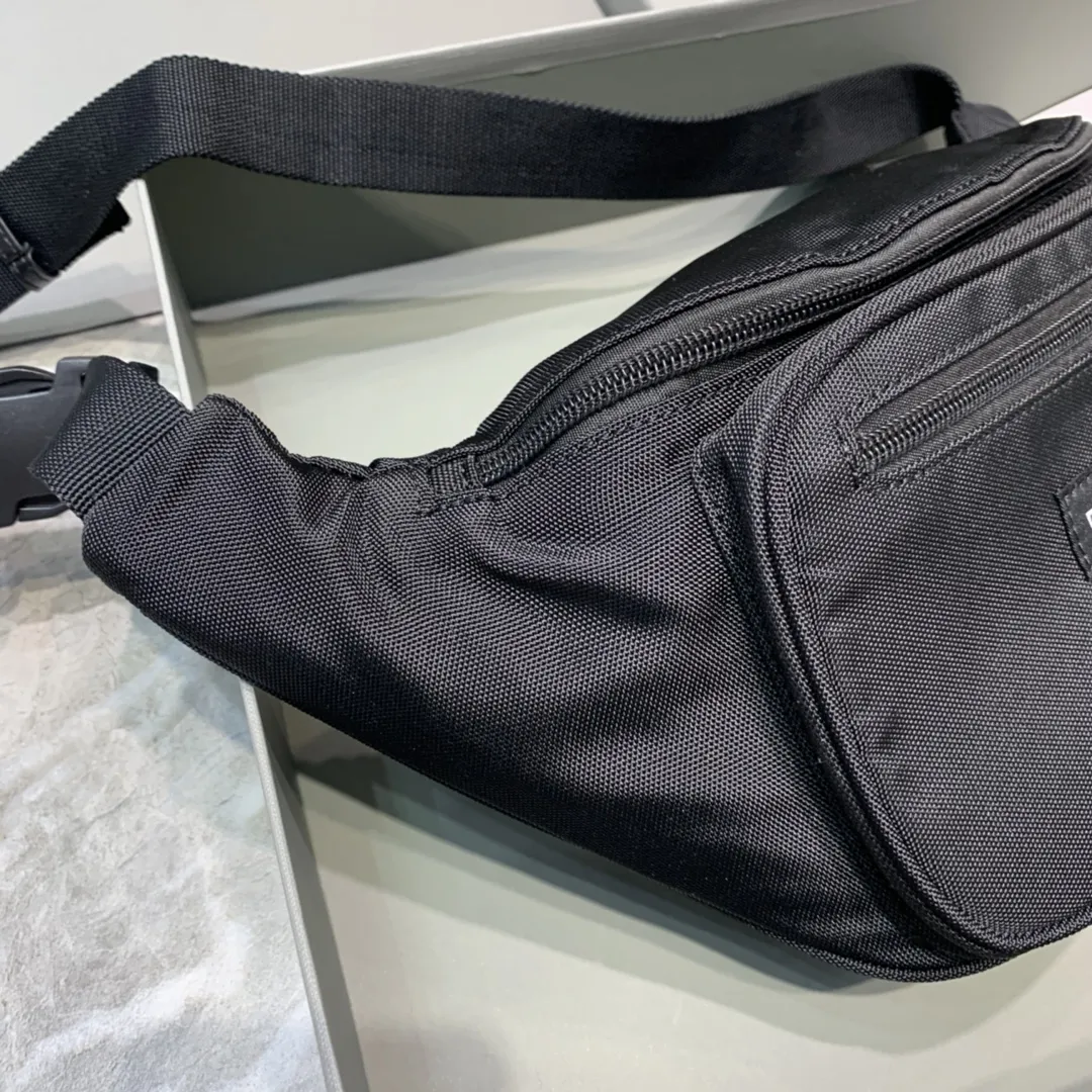BALENCIAGAのブラックキャンバス胸ポーチ・ウエストポーチです。シンプルで軽量なデザインが特徴で、日常使いに最適です。サイズは31cm x 7cm x 15cmで、収納力も十分。高級感のあるパッケージ付きで、プレゼントにもおすすめです。東京のトレンドを感じる一品で、N級品としても注目されています。