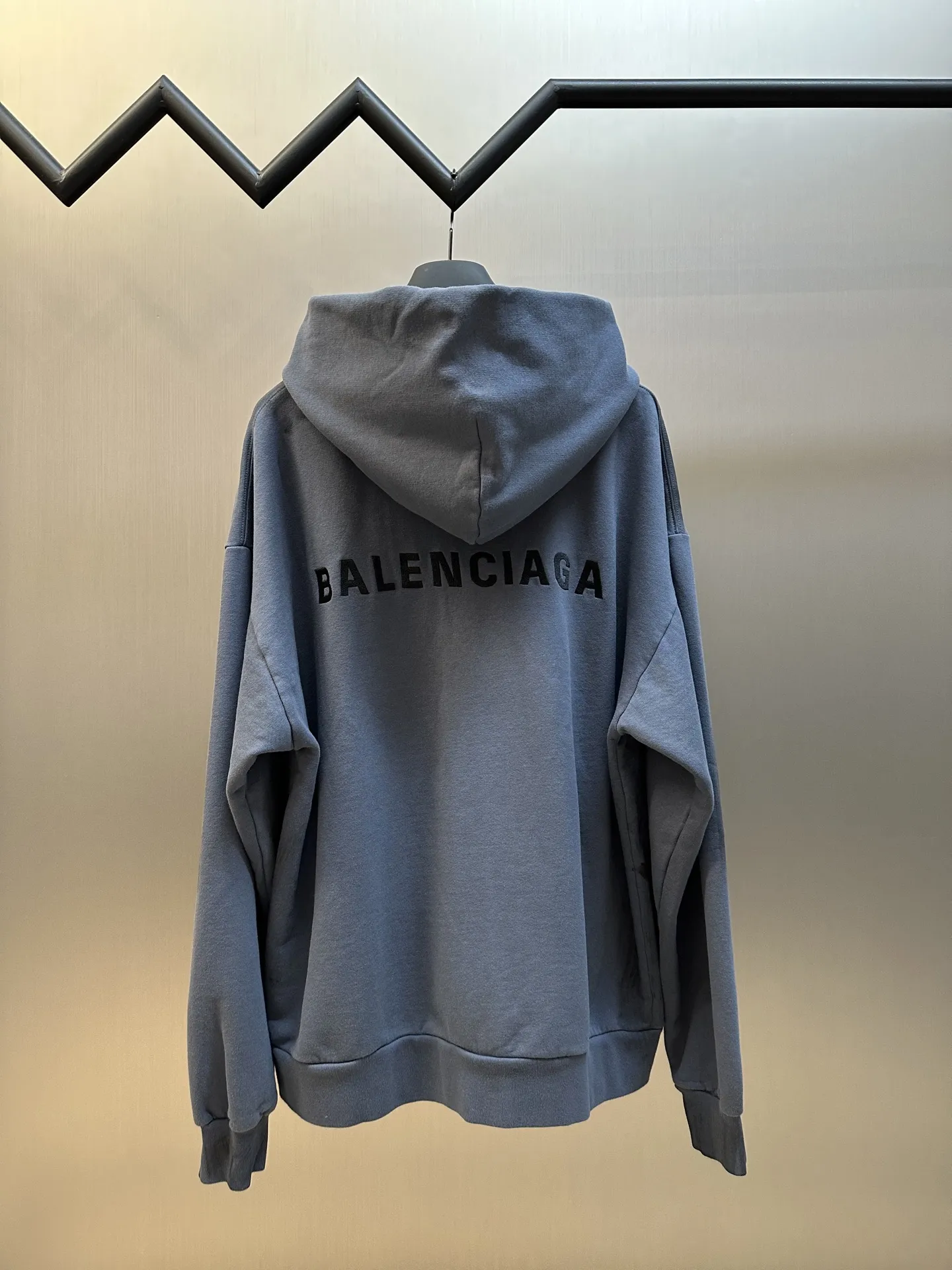 BALENCIAGA ブルー刺繍ジップアップパーカー