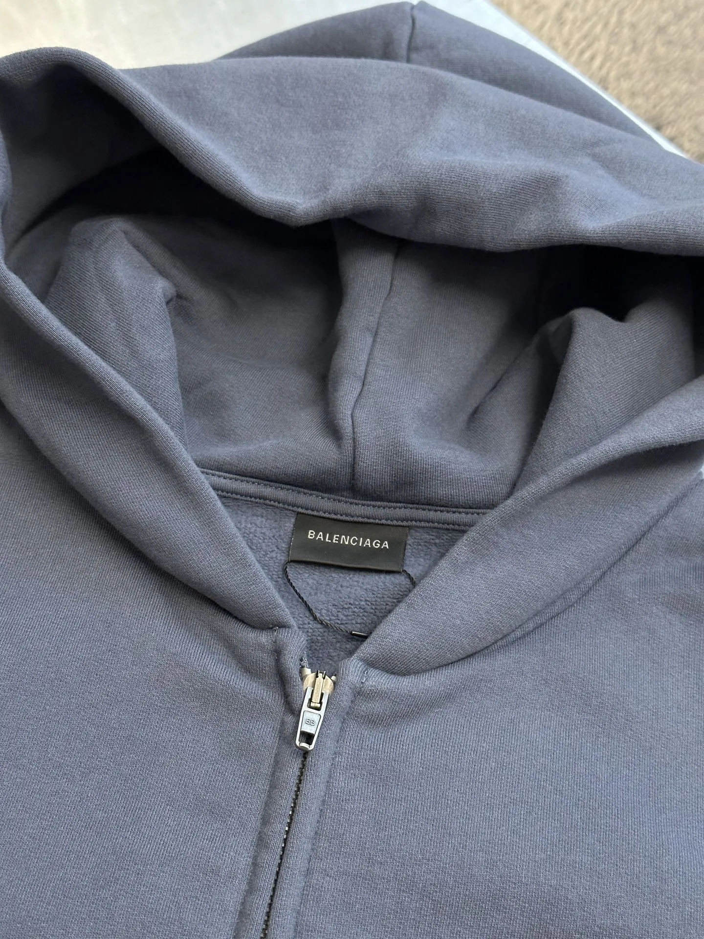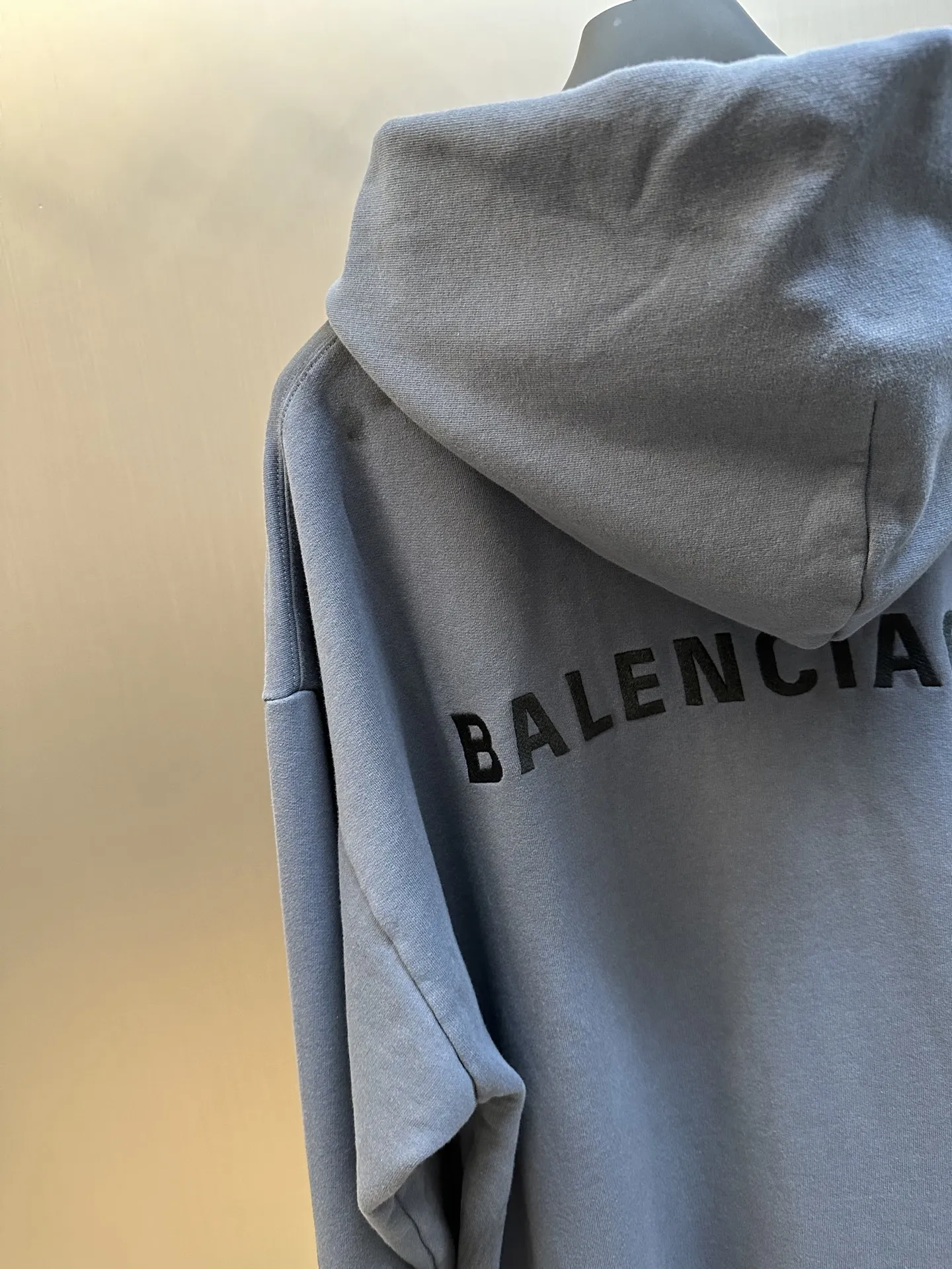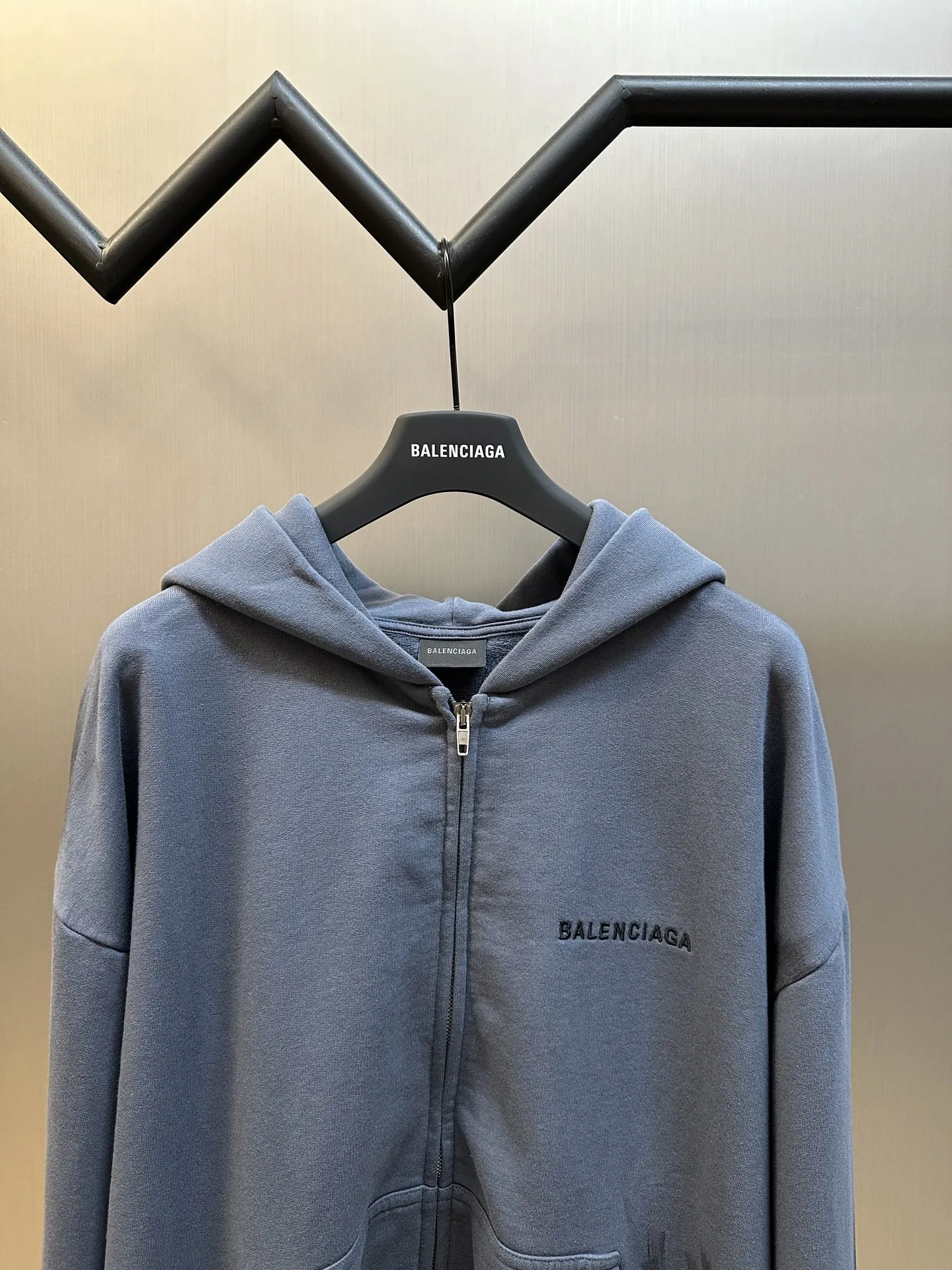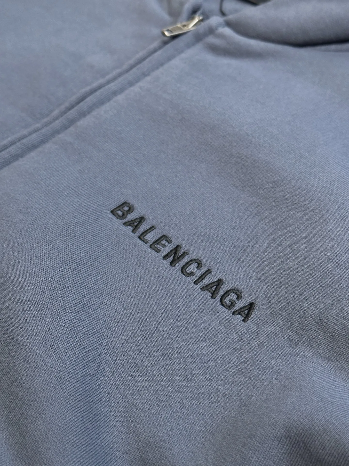 BALENCIAGA ブルー刺繍ジップアップパーカー