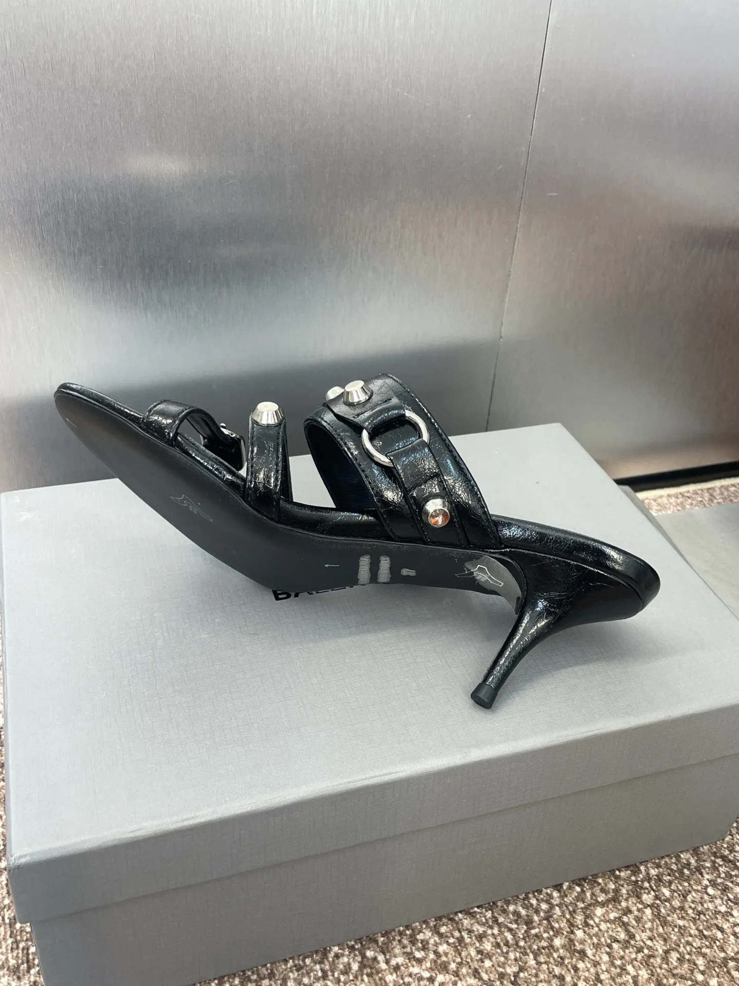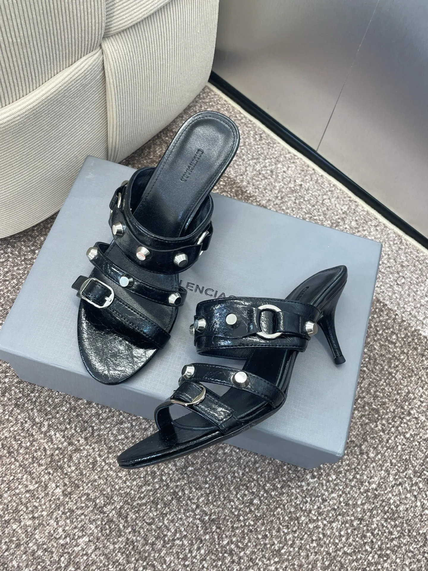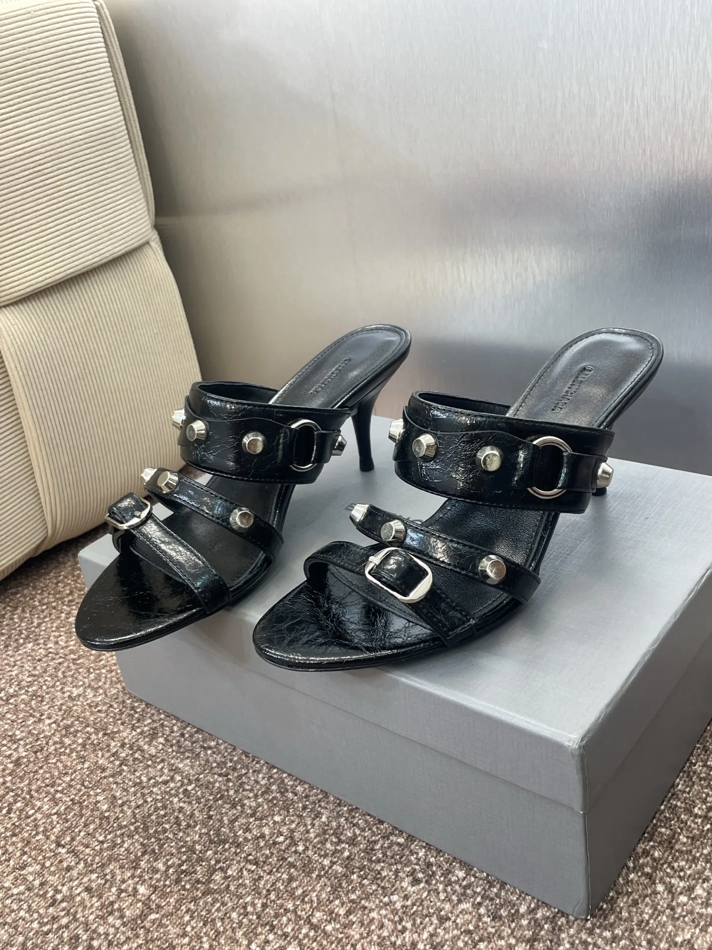 Balenciaga 黒 四角い頭リベットデザインサンダル