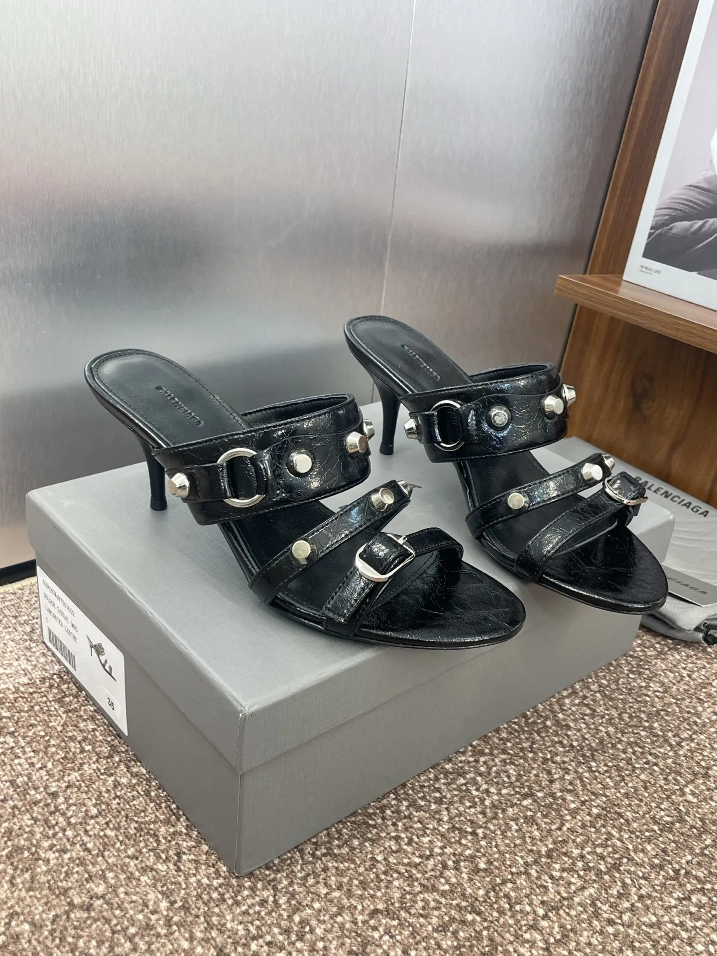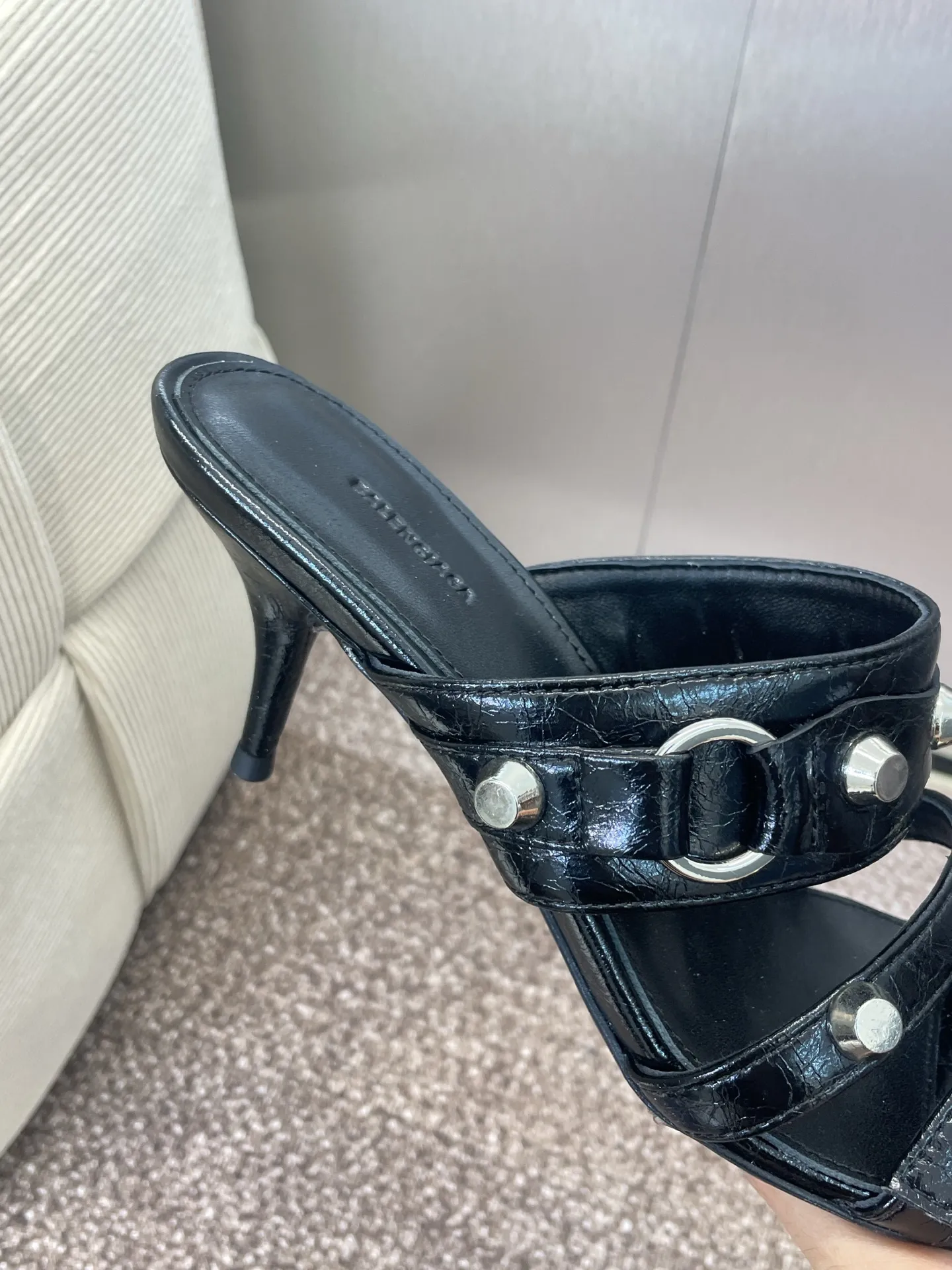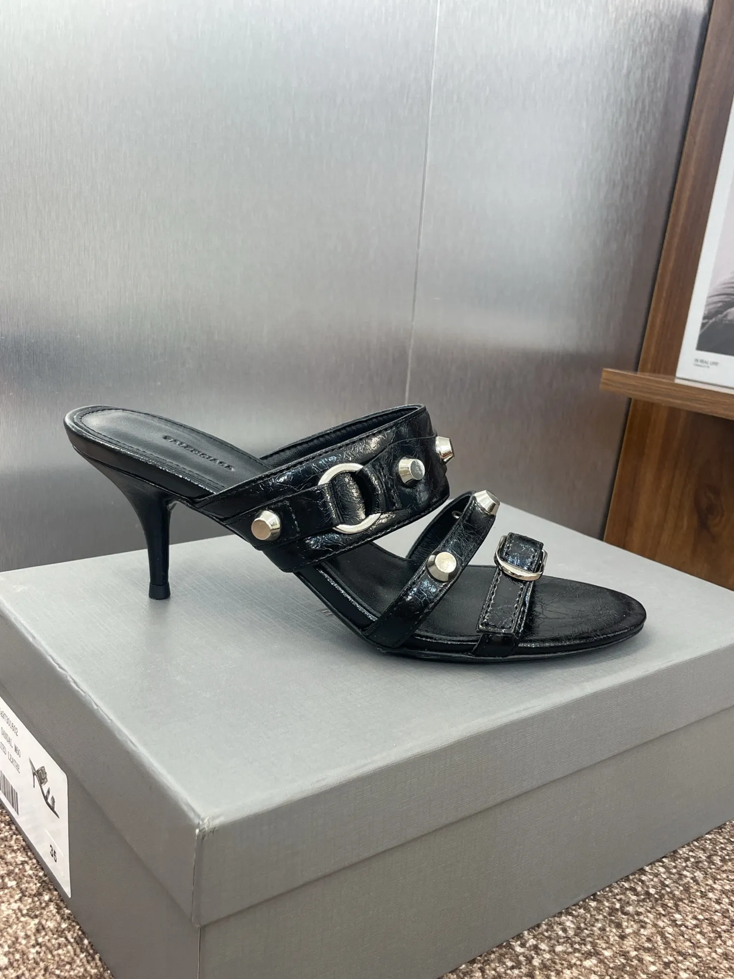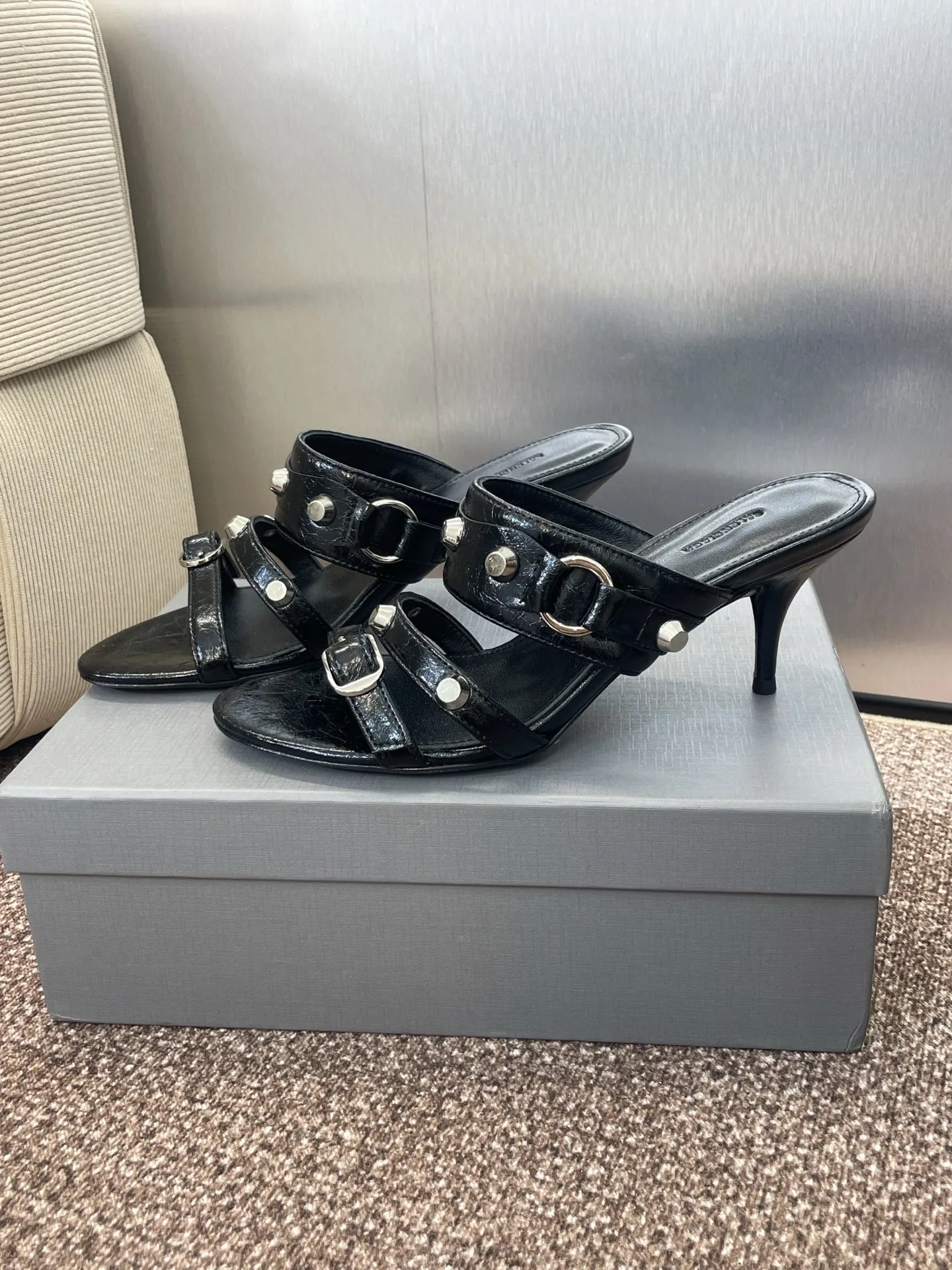 Balenciaga 黒 四角い頭リベットデザインサンダル