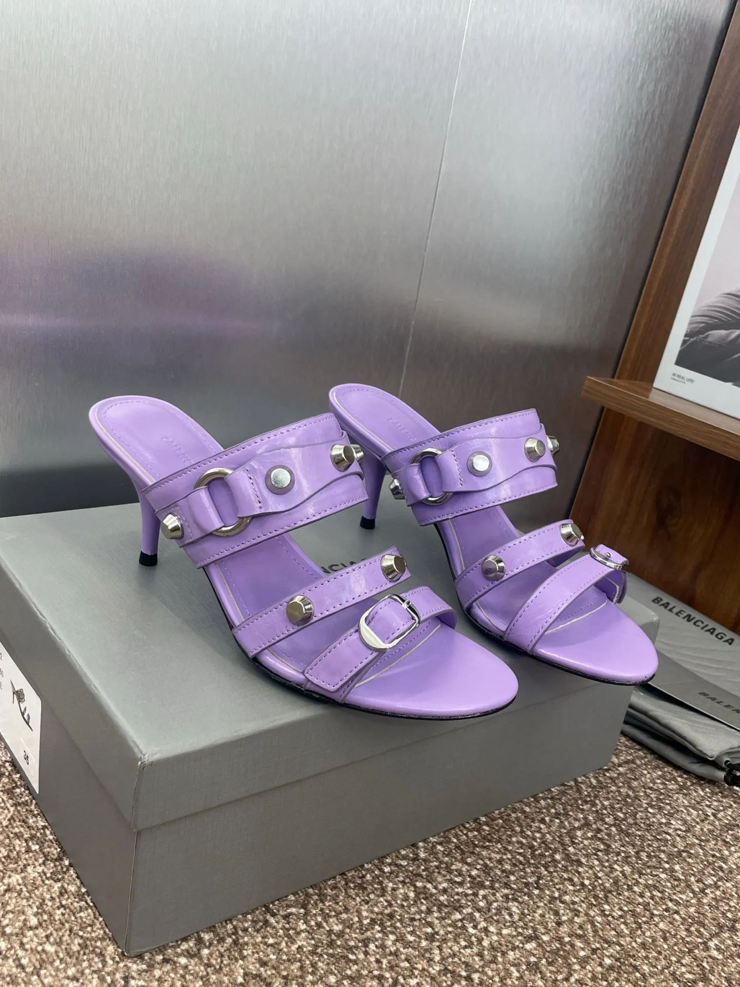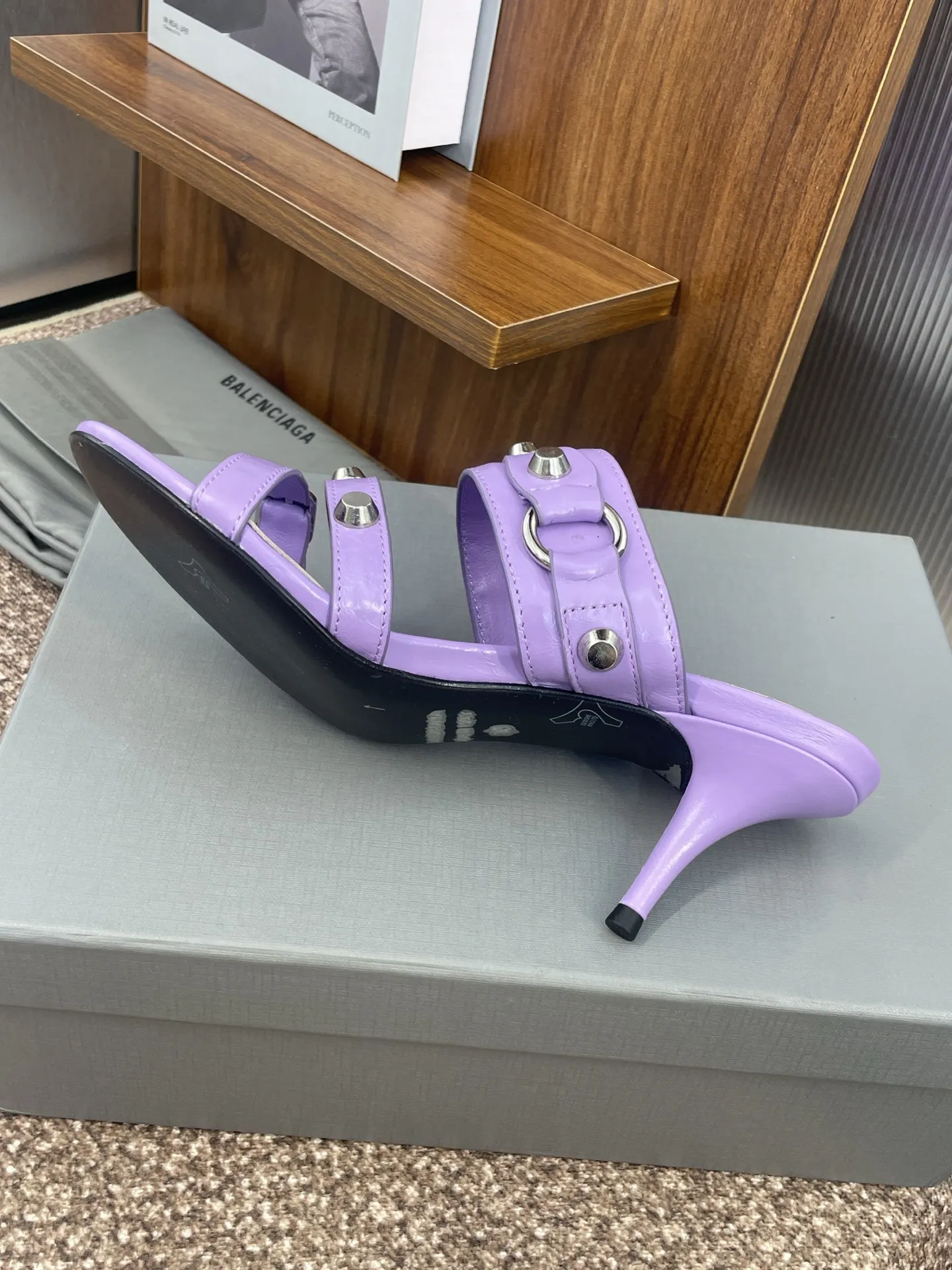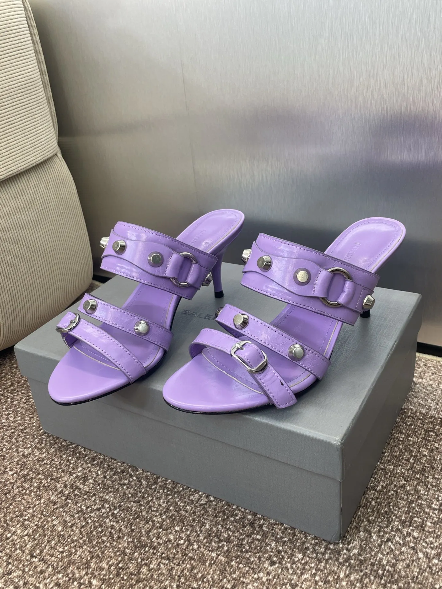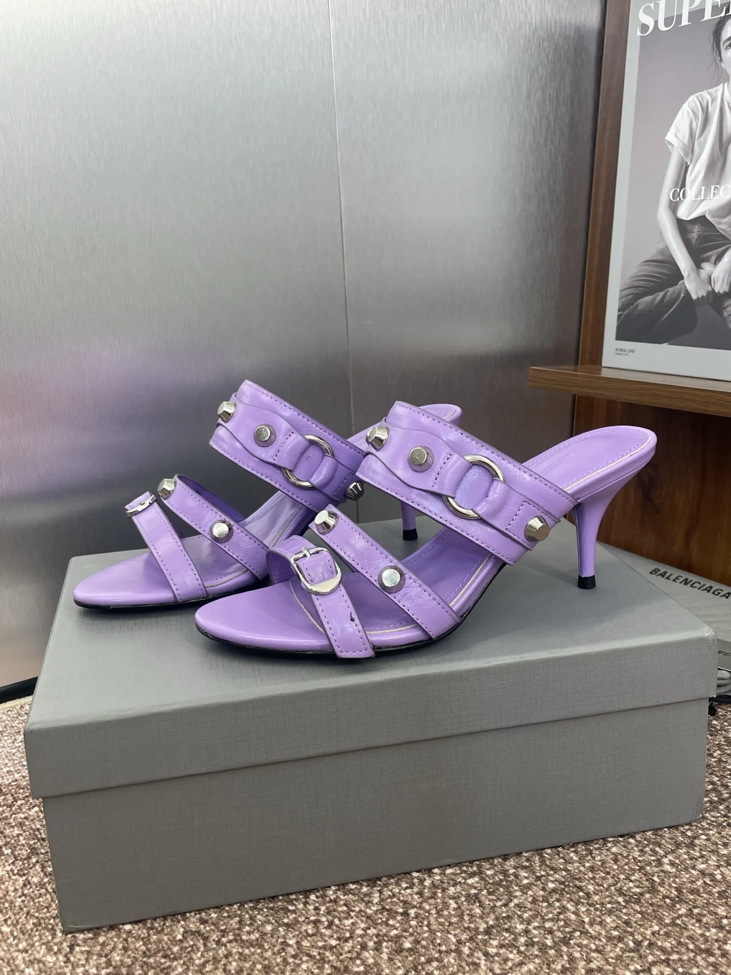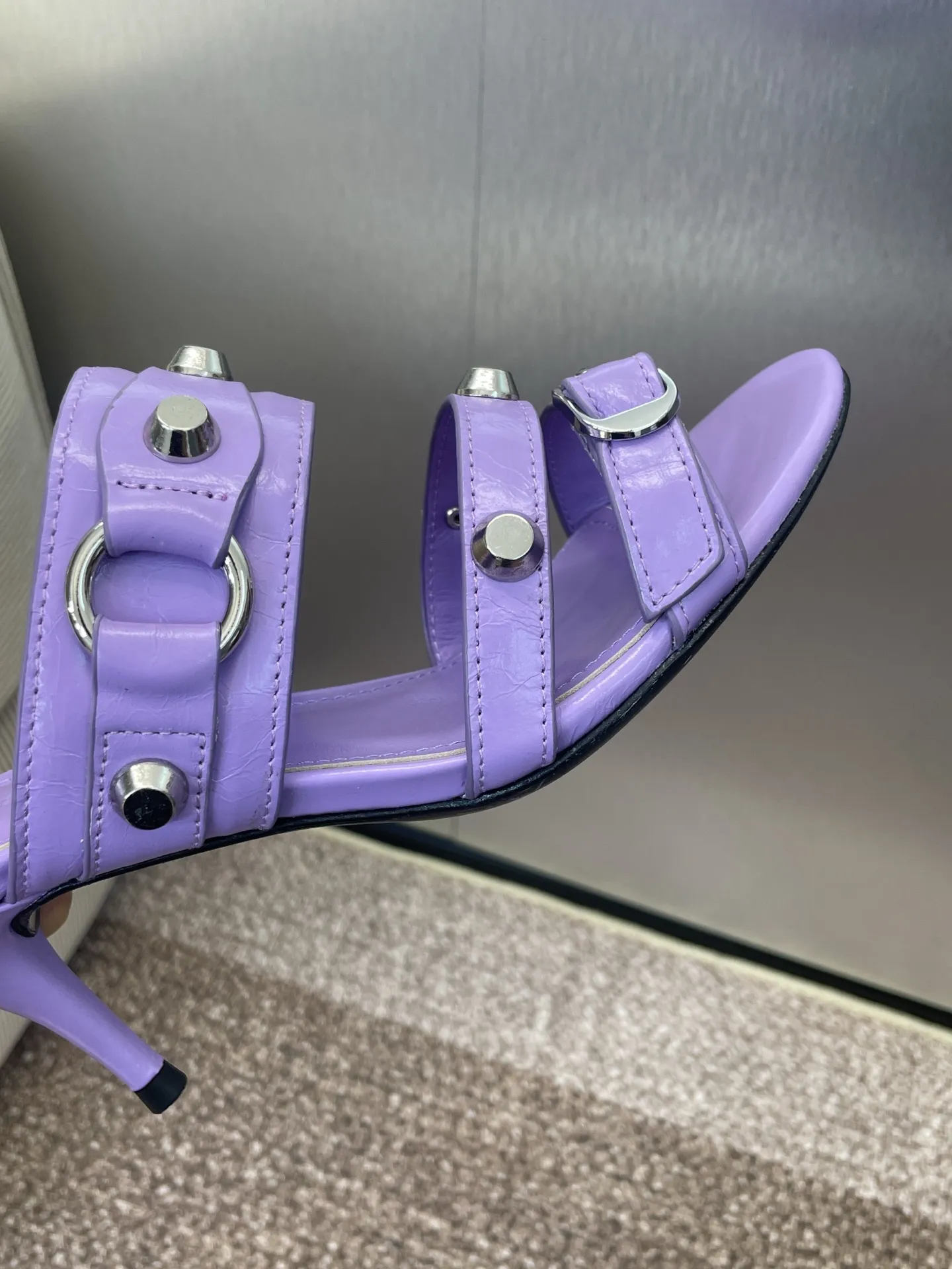 バレンシアガの2025年春夏新作、果実色のパープルリベットデザインサンダルです。6CMのミドルヒールで、パンクスタイルのメタルバックルが特徴的。パリ世家のロゴが施された金具がアクセントを添えます。高級素材を使用し、履き心地も抜群です。露 toeデザインで夏のファッションに最適な一足を、ぜひスーパーコピーでお探しください。特別なスタイルを求める方におすすめのアイテムです。