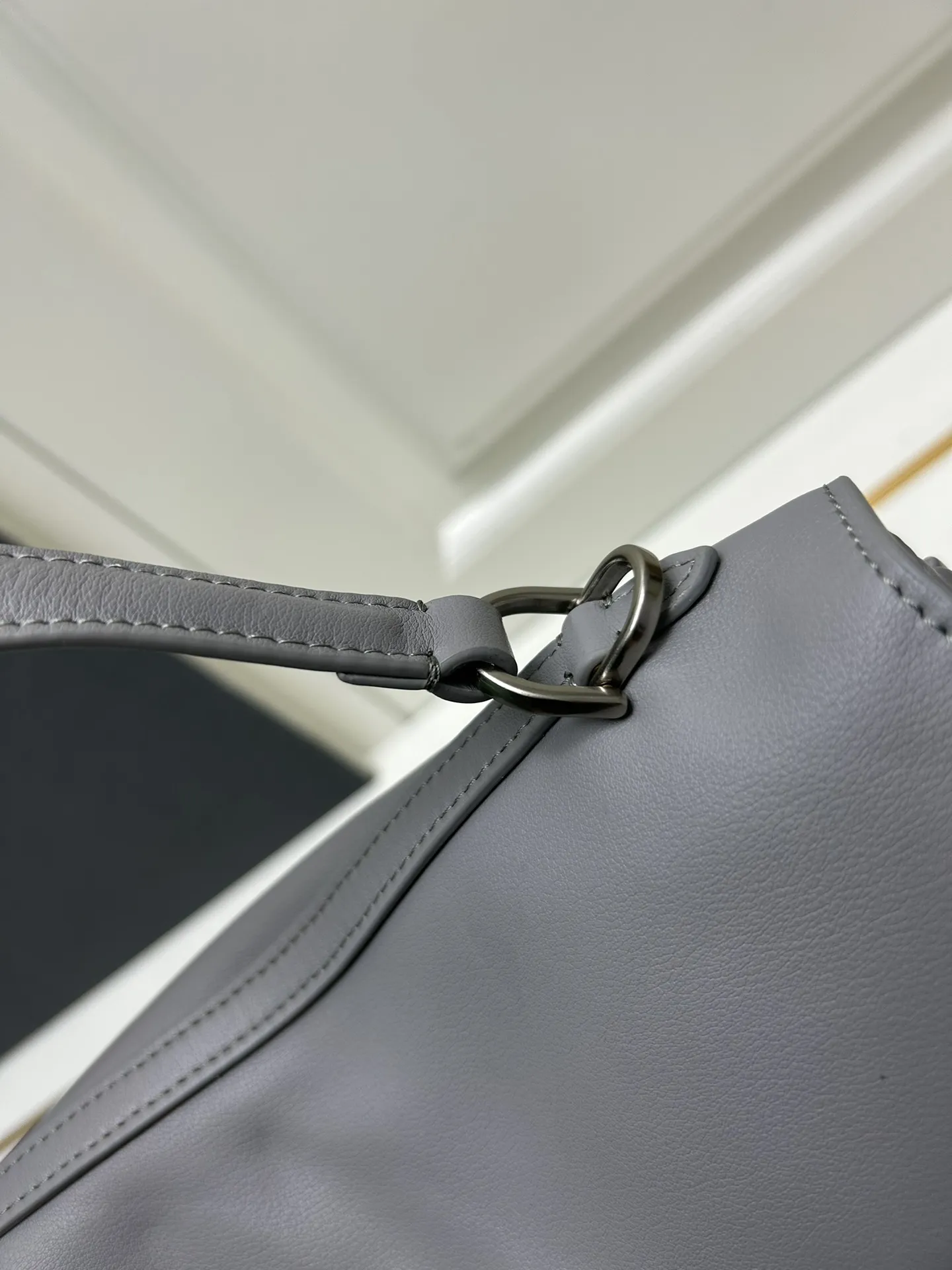 BalenciagaのRodeoシリーズから、グレーの大きなトートバッグです。柔らかい大廓形デザインで、リラックスした雰囲気を演出します。静奢風のデザインが上品で、日常使いに最適。寸法は39.8×29.9×12.9cmで、ショルダーストラップも付いています。ロサンゼルスのRodeo Driveをイメージした新作で、ファッションショーでも注目を集めました。このような高品質なアイテムをお探しの方には、N級品もおすすめです。