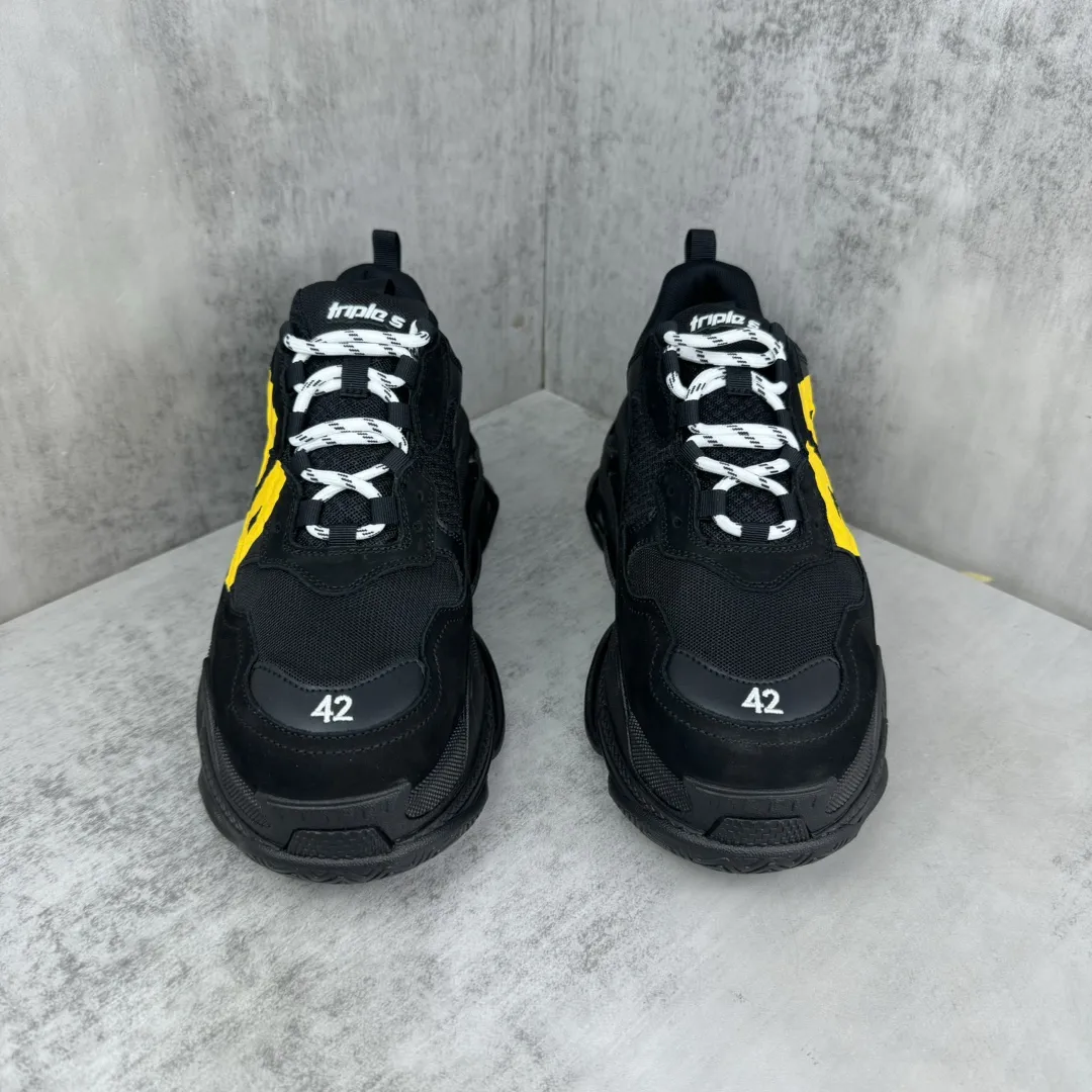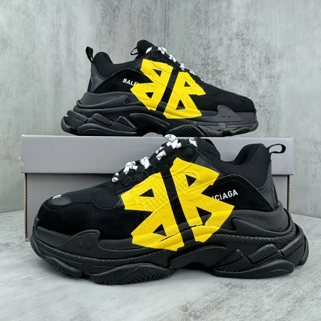 Balenciaga Triple S ブラックイエローロゴスニーカー