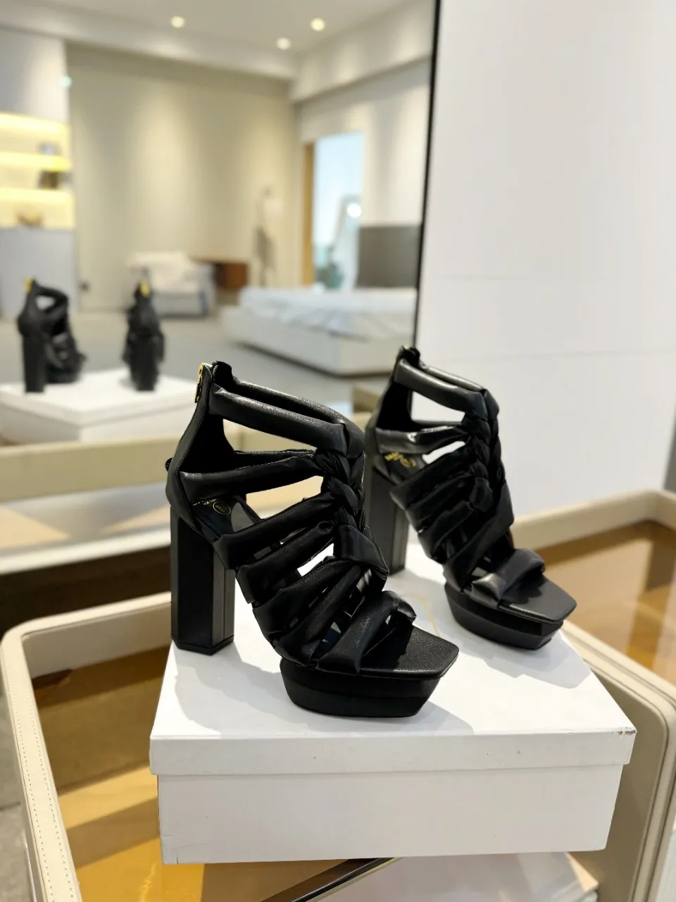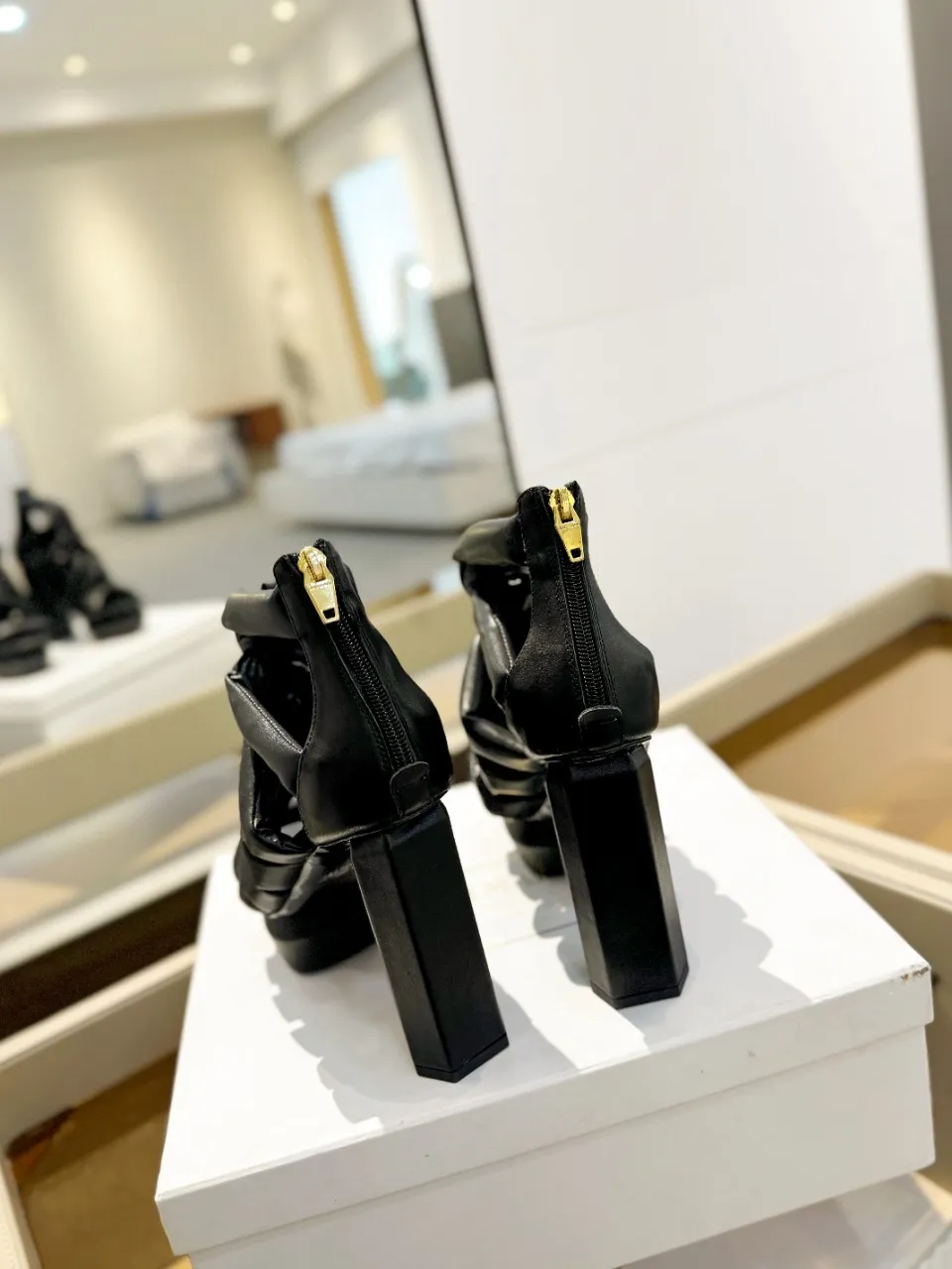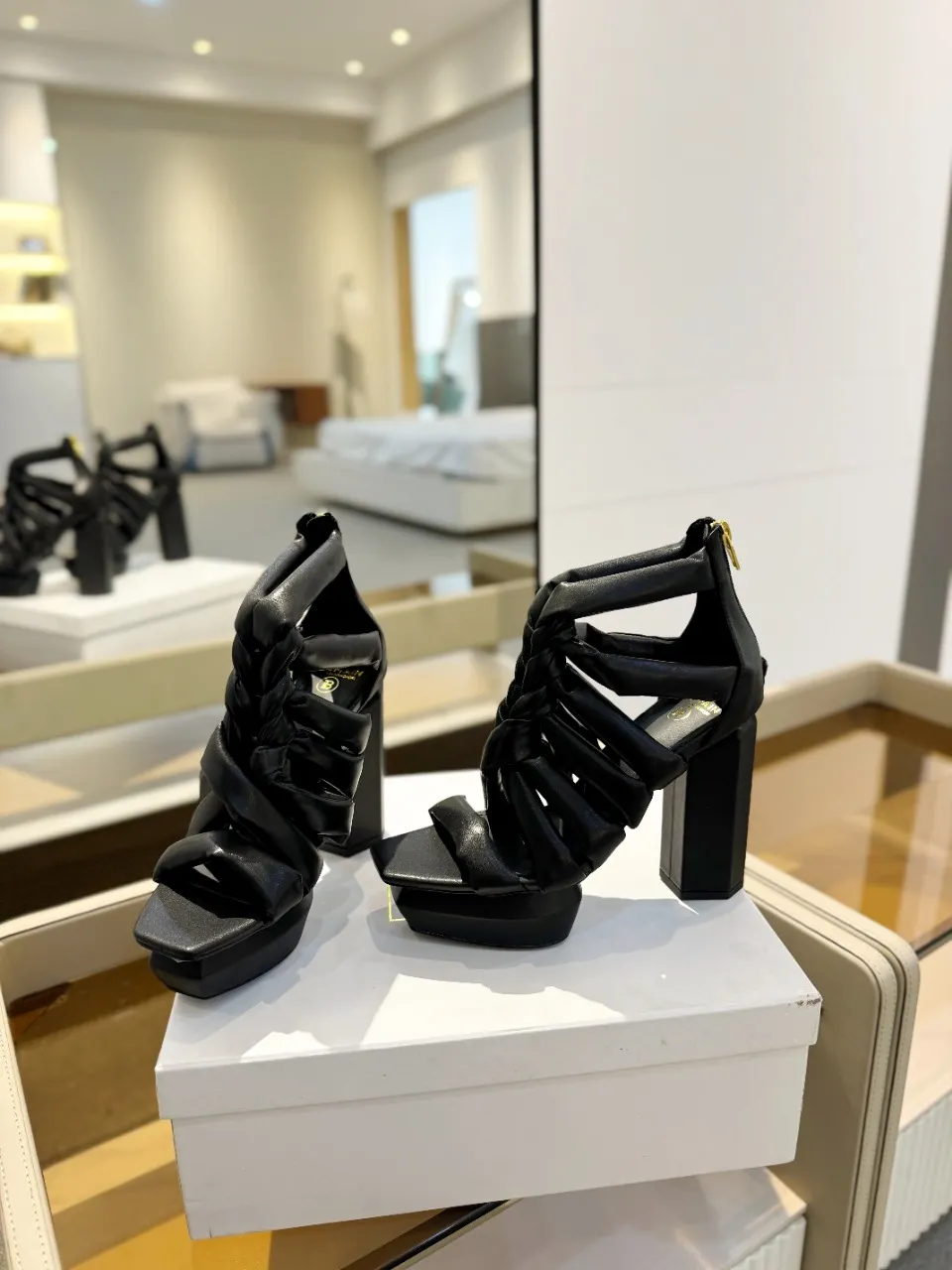Balmain 2024春夏ブラック防水プラットフォームハイヒールサンダル