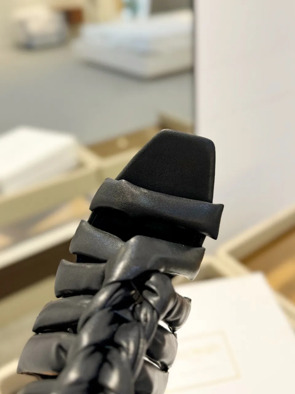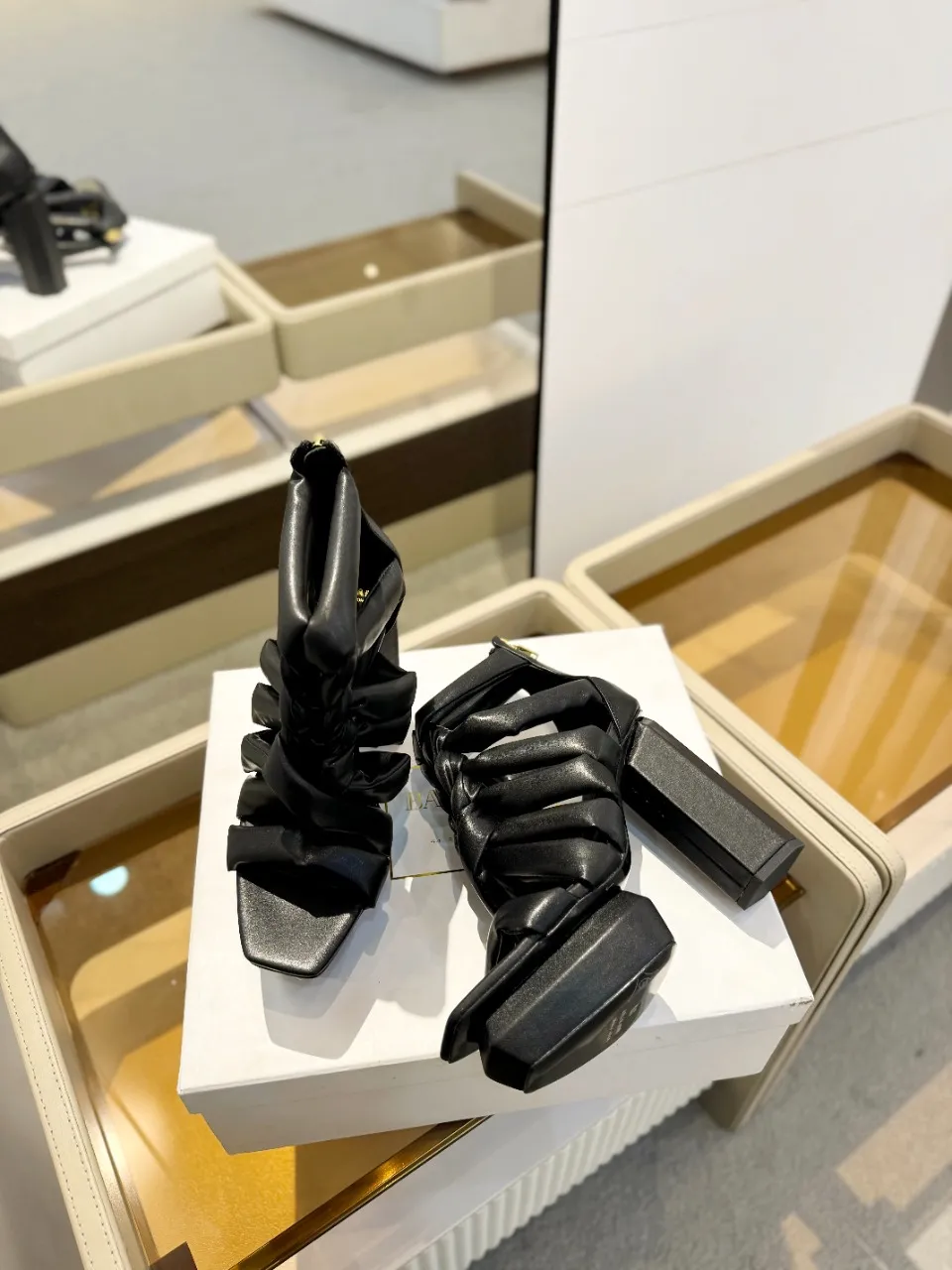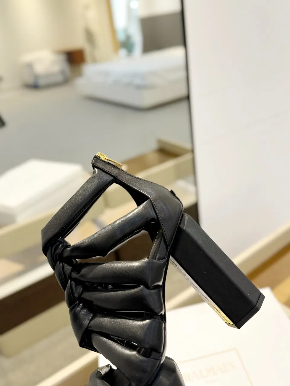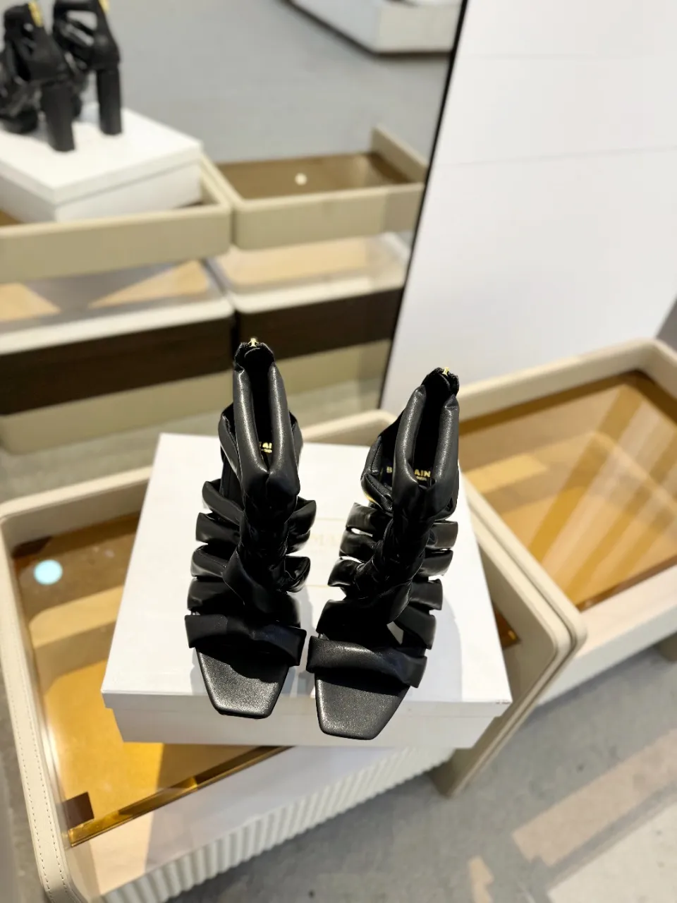 Balmainバレマン黒四角い頭ハイヒールサンダル新作
