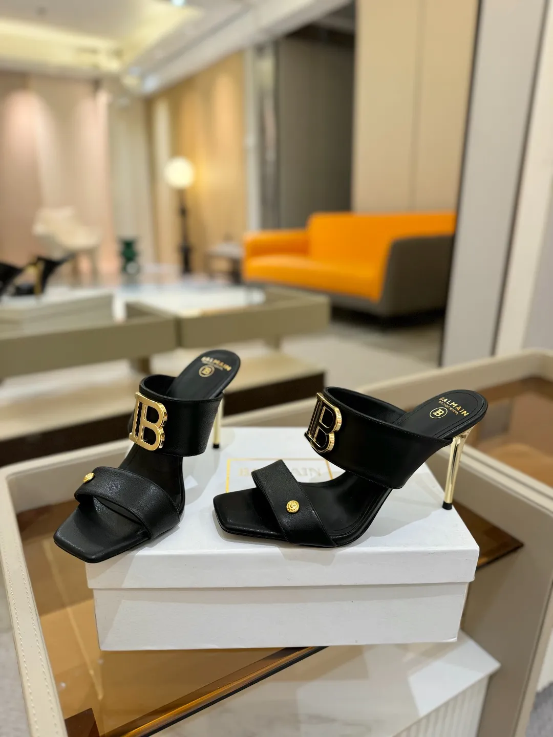 Balmainバレマン2025春夏新作メタルハイヒールスクエアトゥサンダル