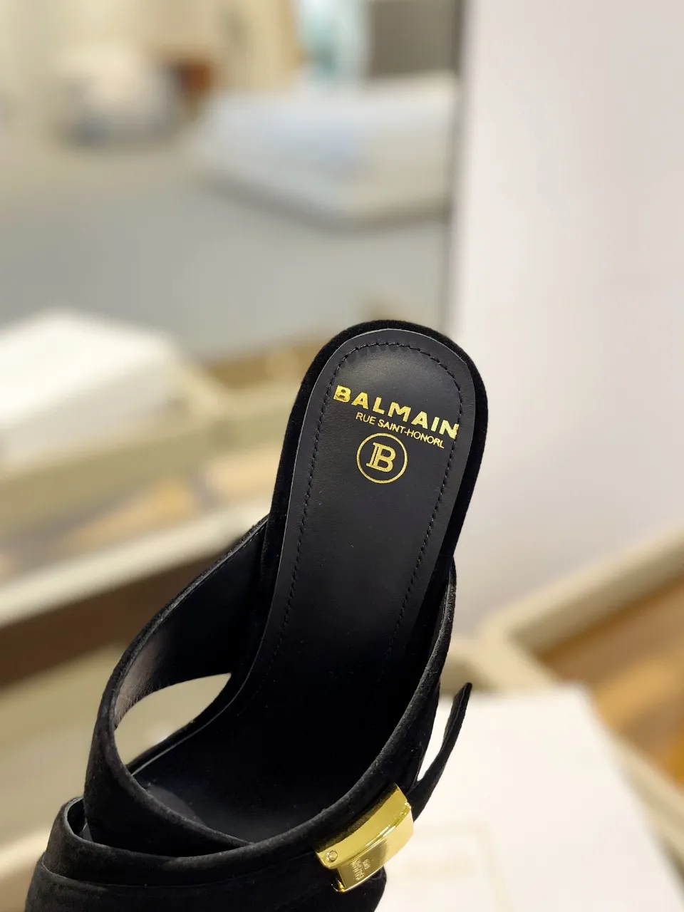 Balmain 2025 白防水プラットフォームハイヒールのスリッパファッション