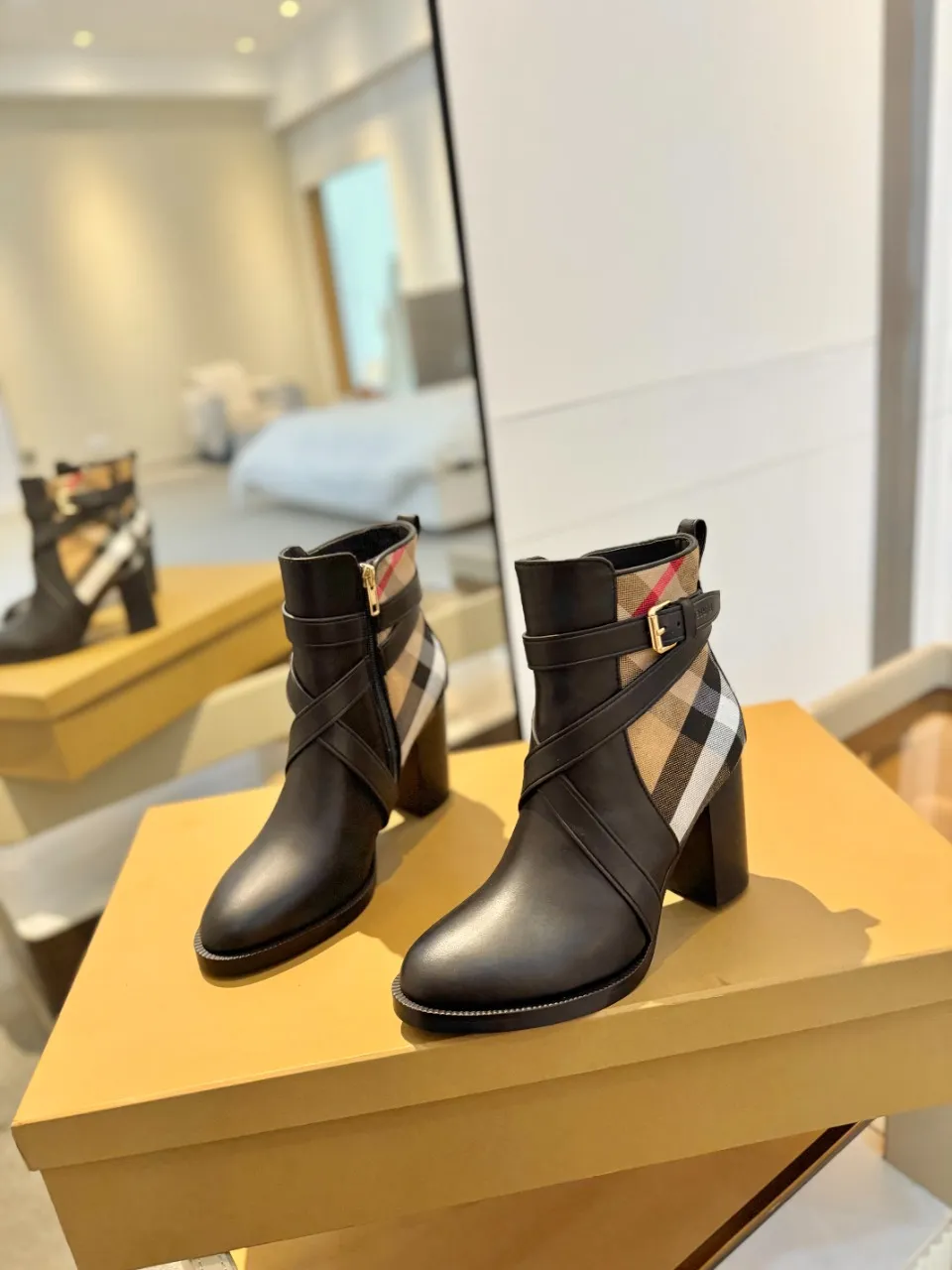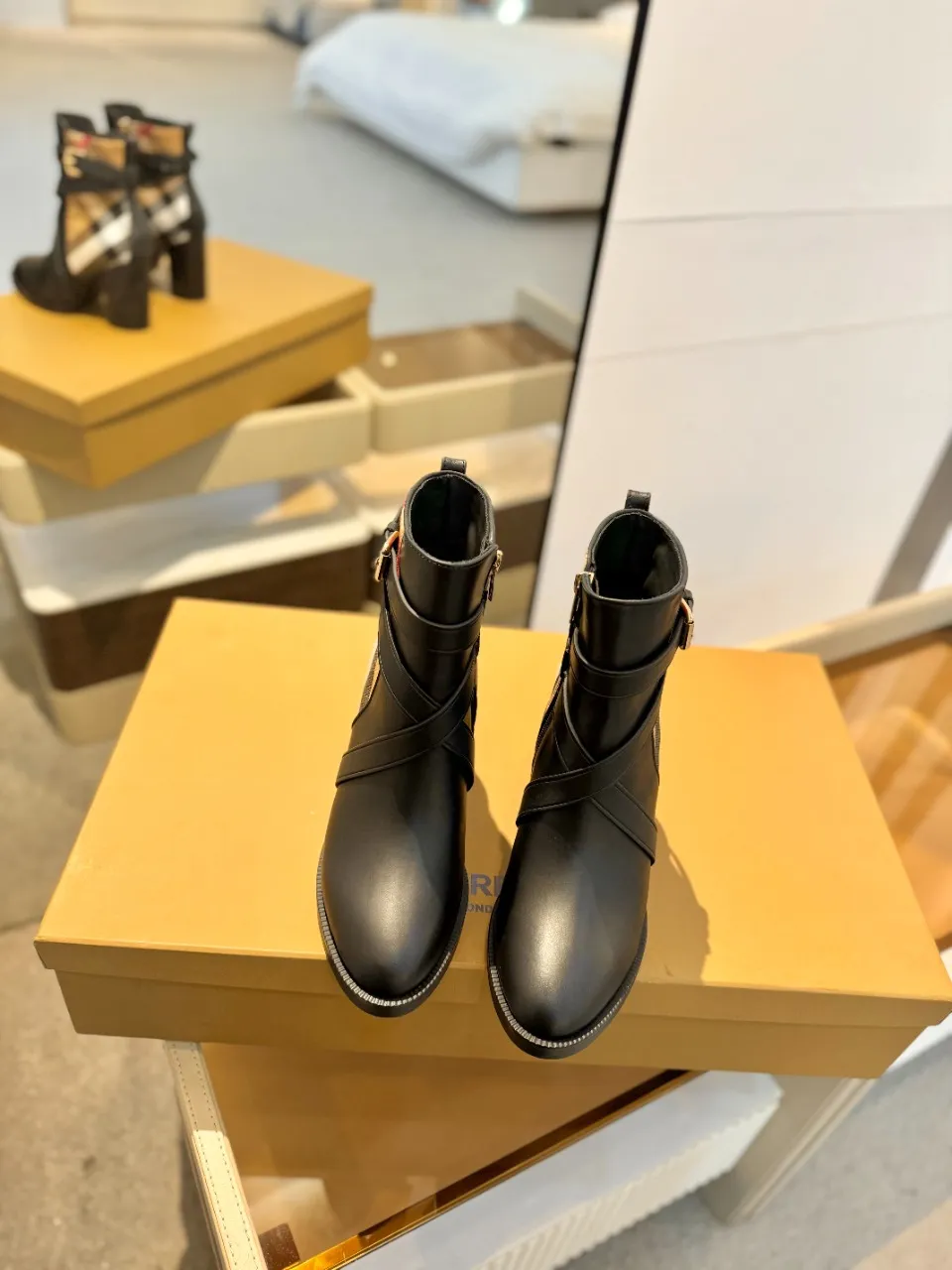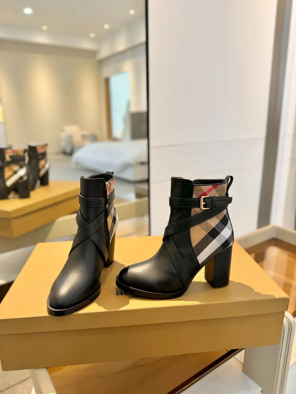 Burberry ブラック格子柄アンクルブーツ新作