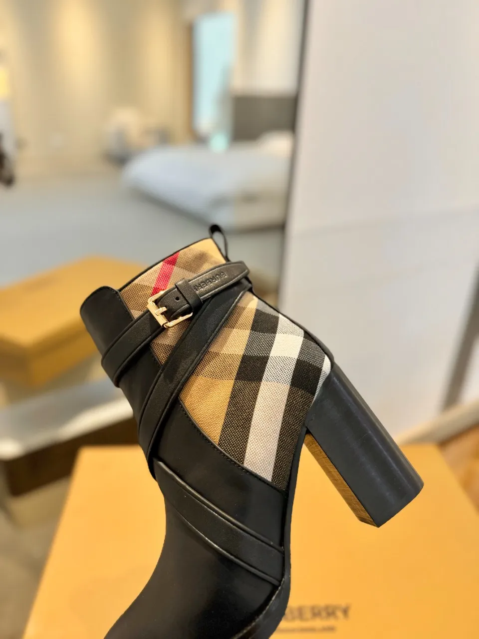 Burberry 細ヒールチェック柄スリッパ新作