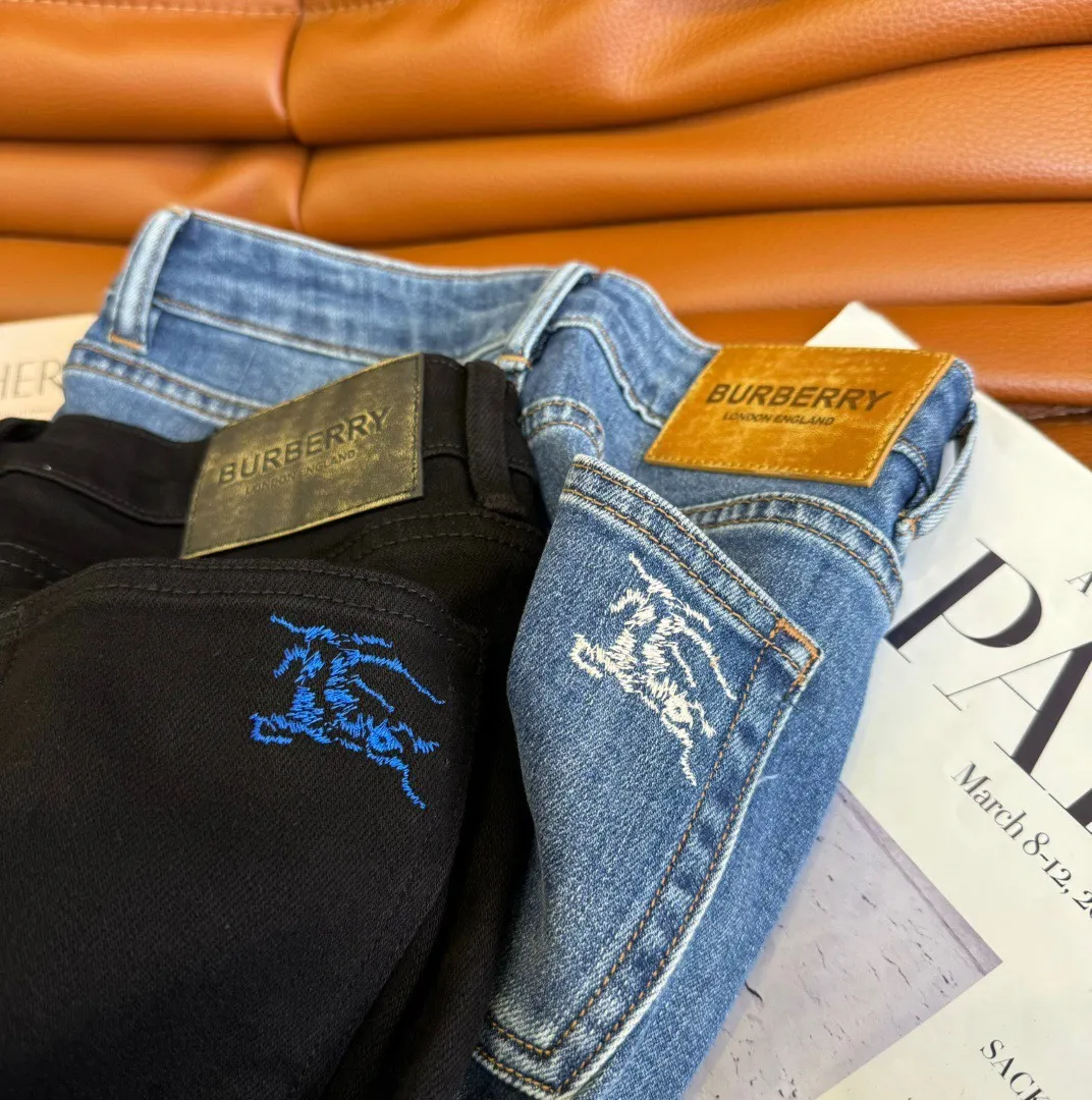 Burberry ブルー 小脚牛仔ズボン 戦馬ロゴ