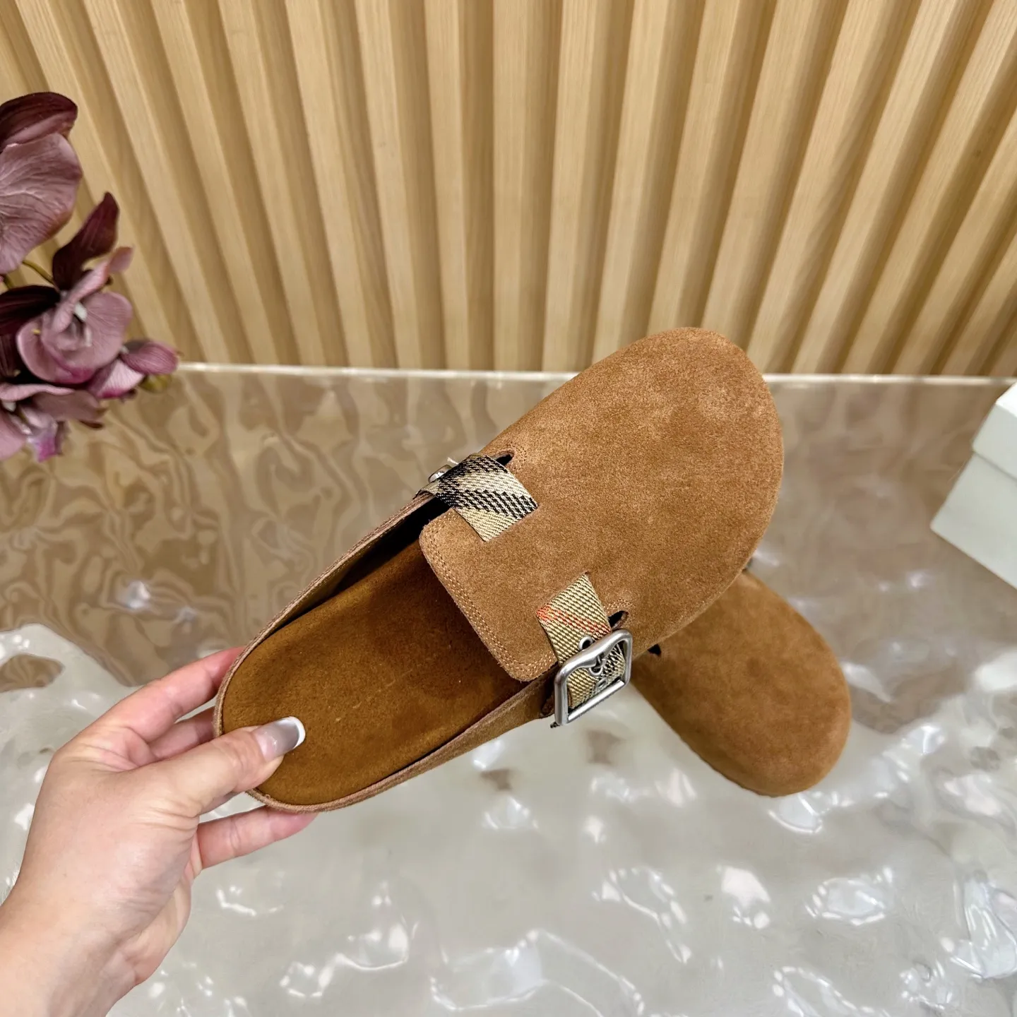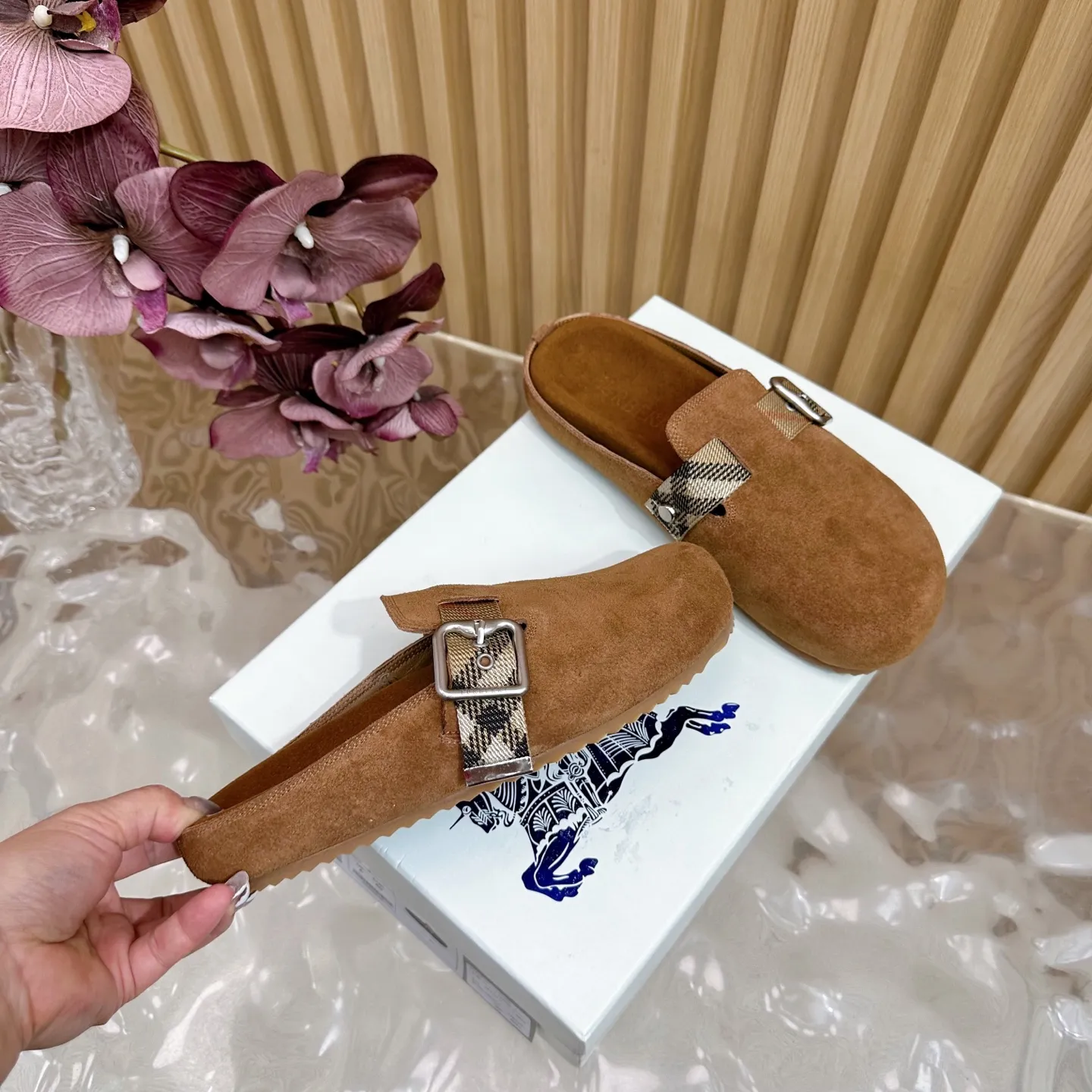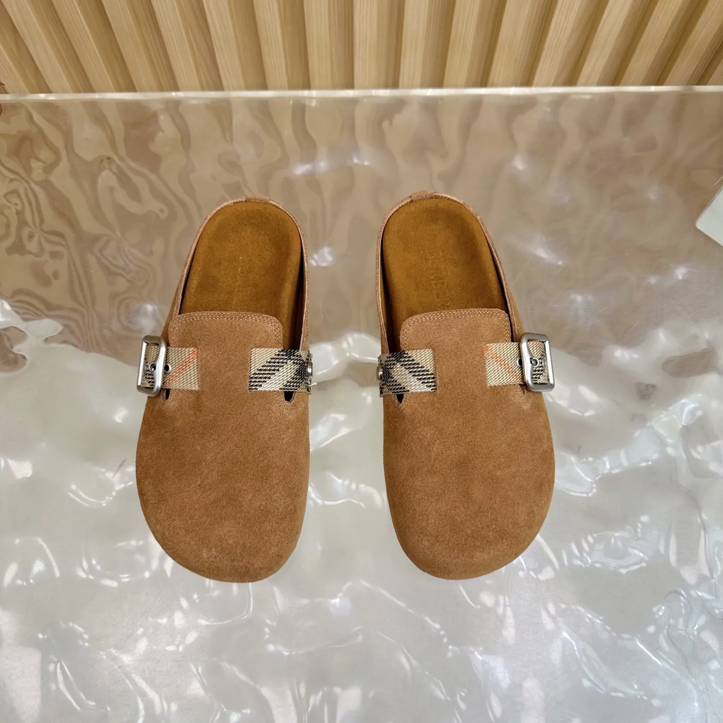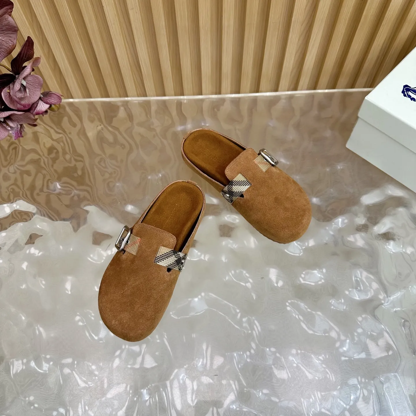 Burberry 茶色ビルケンシュトックのスリッパ新作