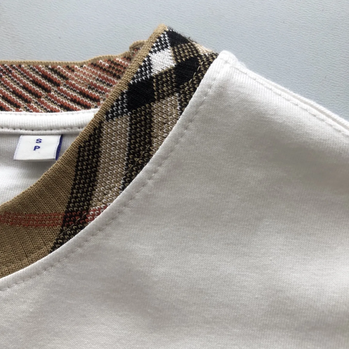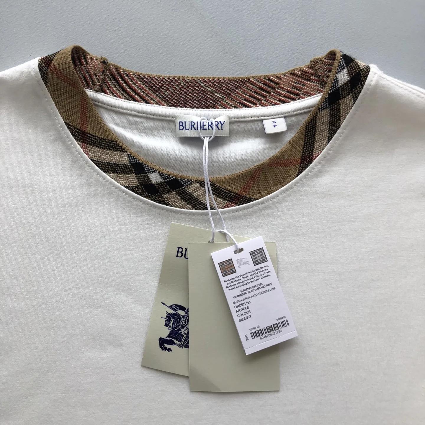 Burberry ホワイト 25チェックネックTシャツ