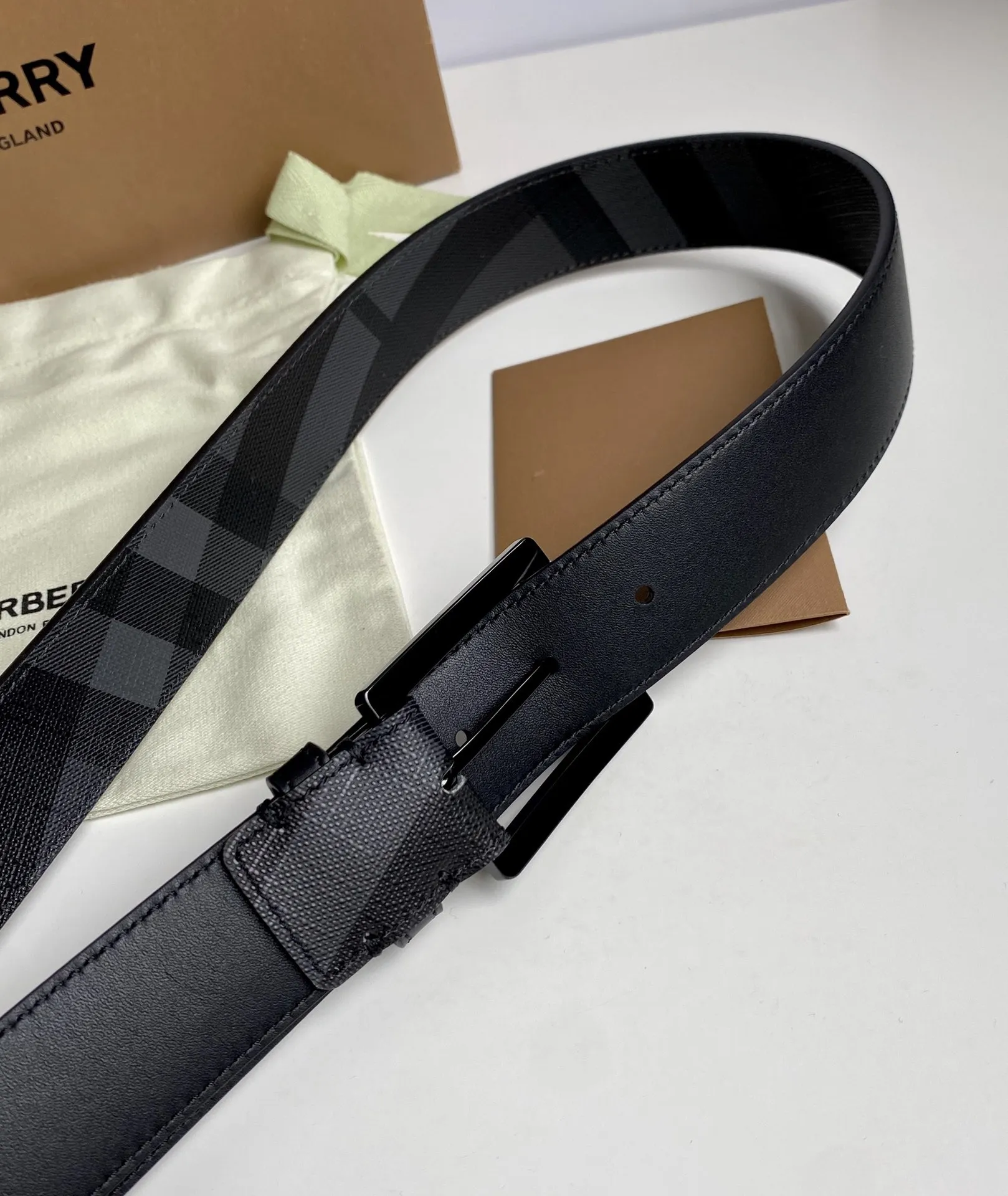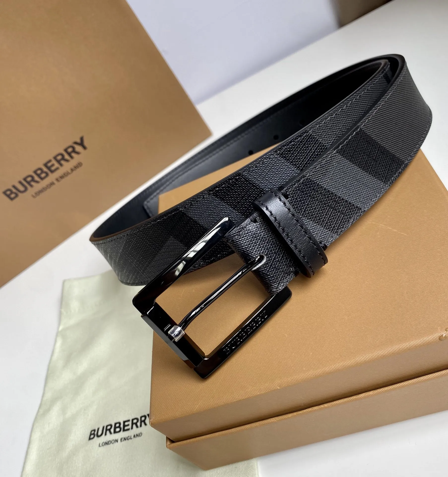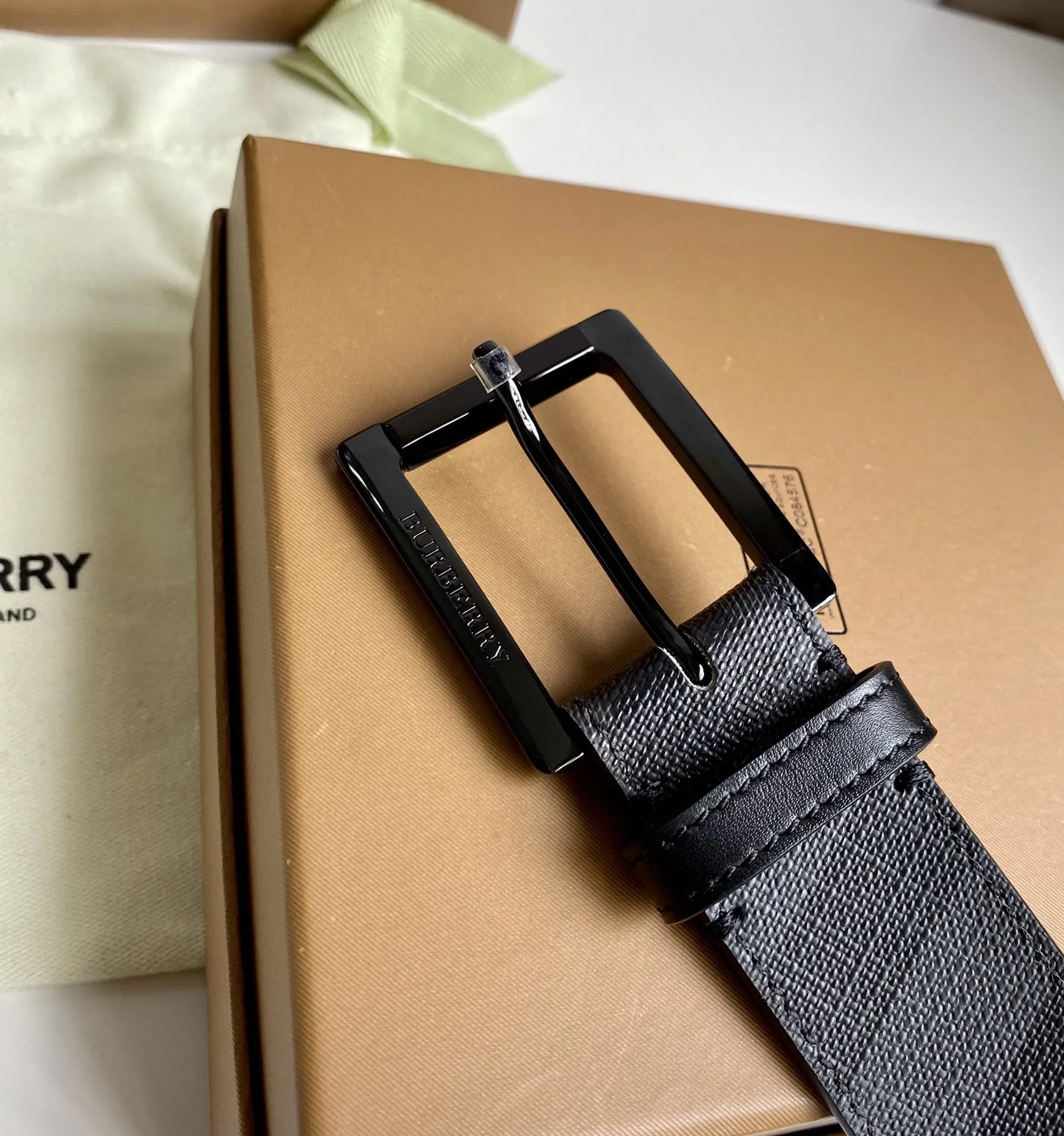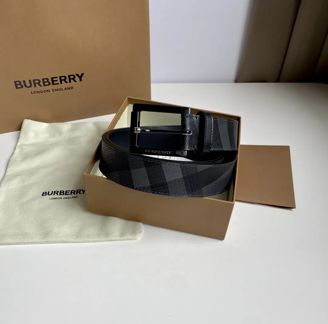 Burberry 新作黒London格子皮革ベルト