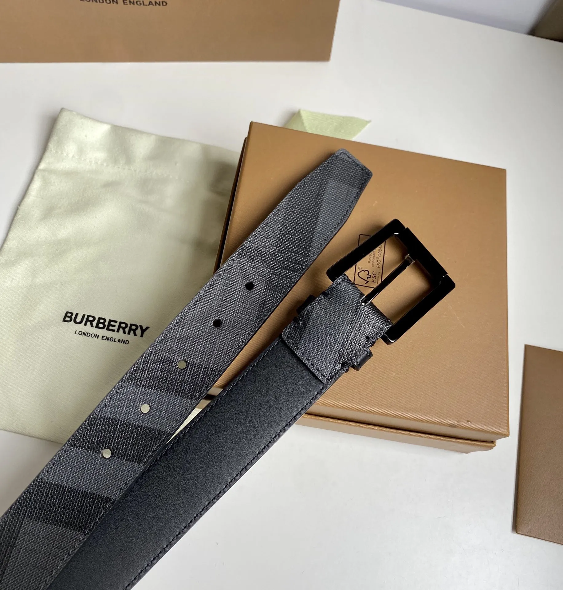 Burberry 新作ベージュチェックレザーベルト