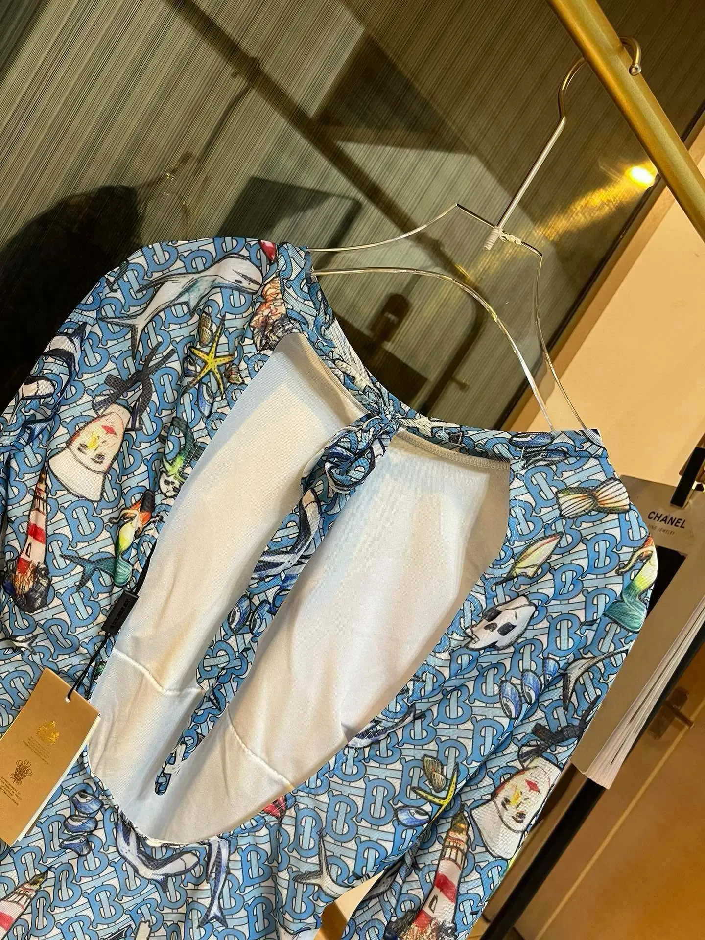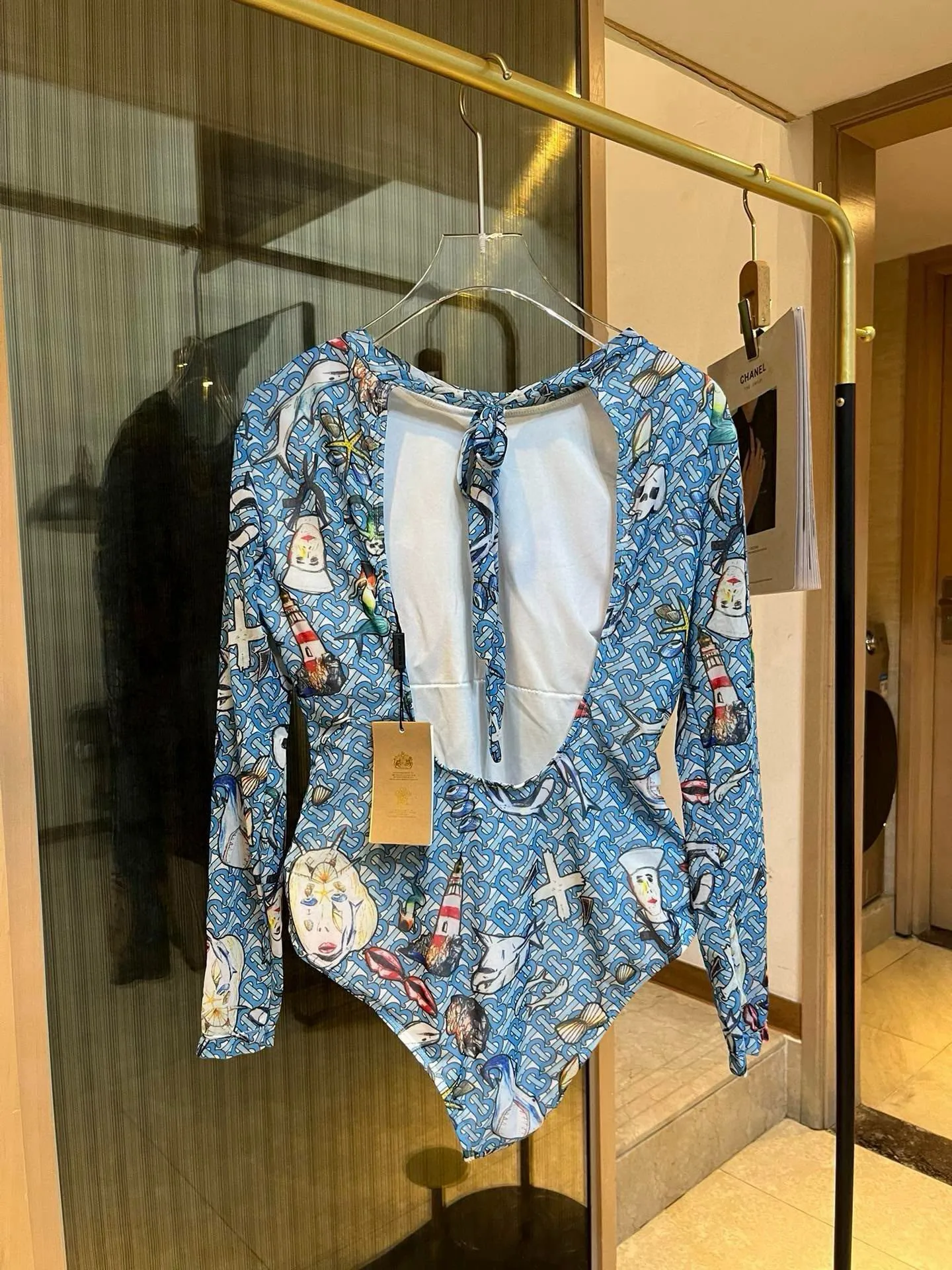 Burberry TB字母連体水着ブルーオレンジSMLXL