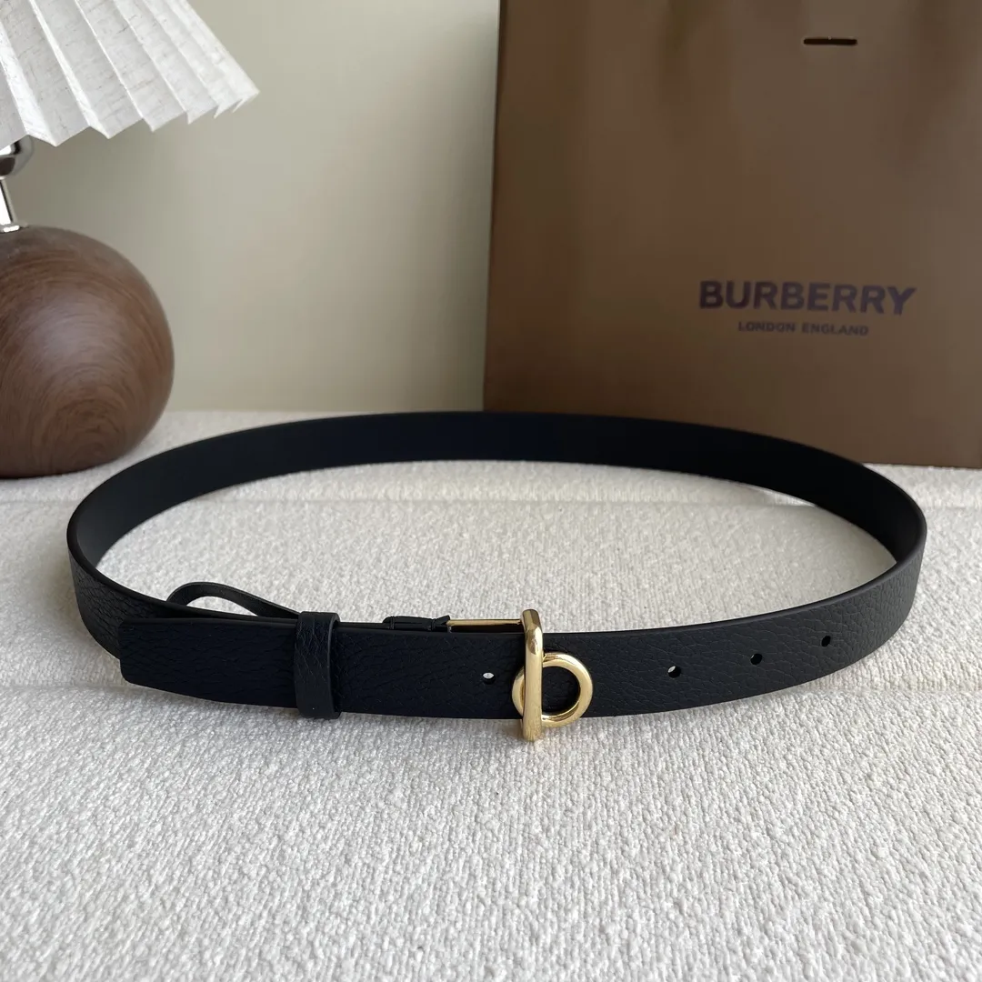 BURBERRY粒子牛革ベルト黒シンプルデザイン