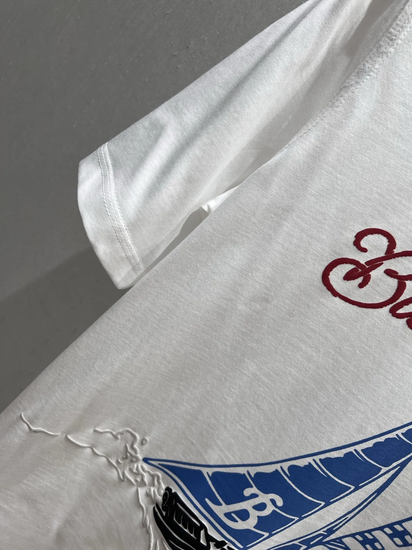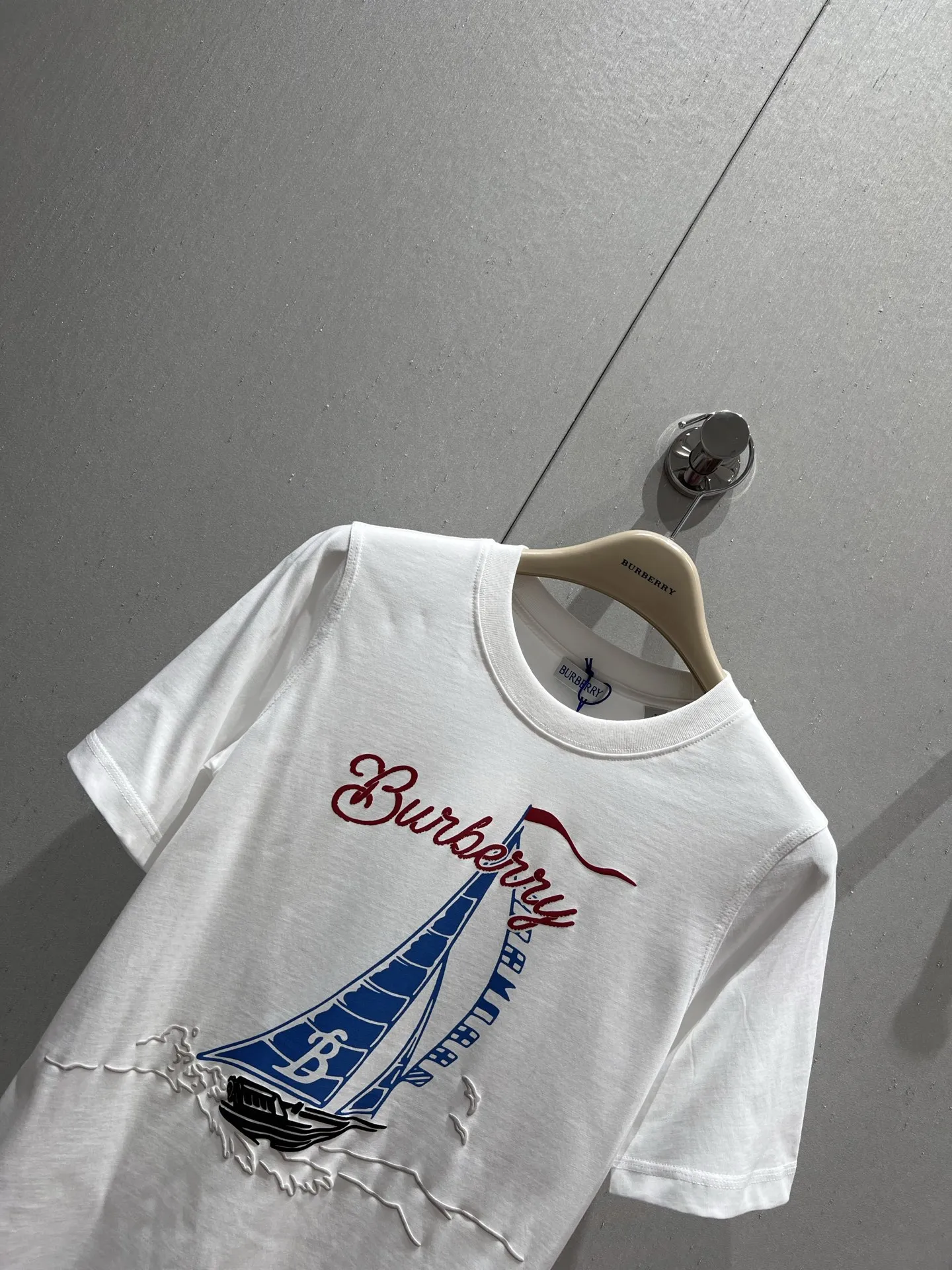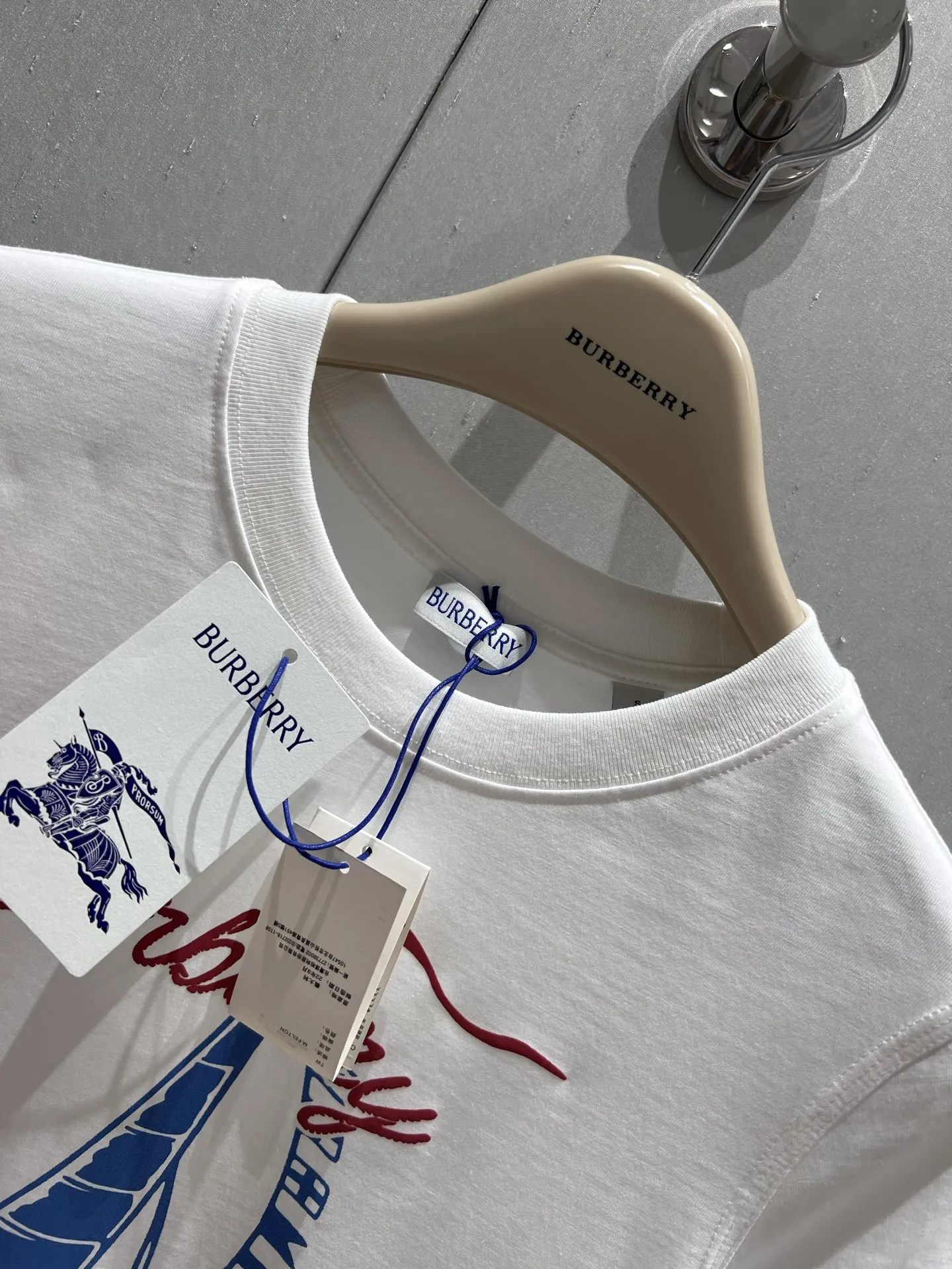 BURBERRY新作白刺繍アルファベット半袖Tシャツ
