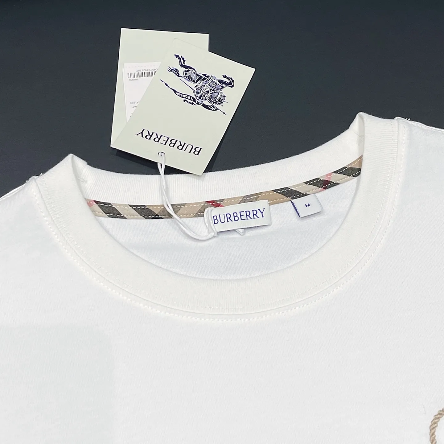 BURBERRY新作白刺繍格子アルファベット半袖Tシャツ