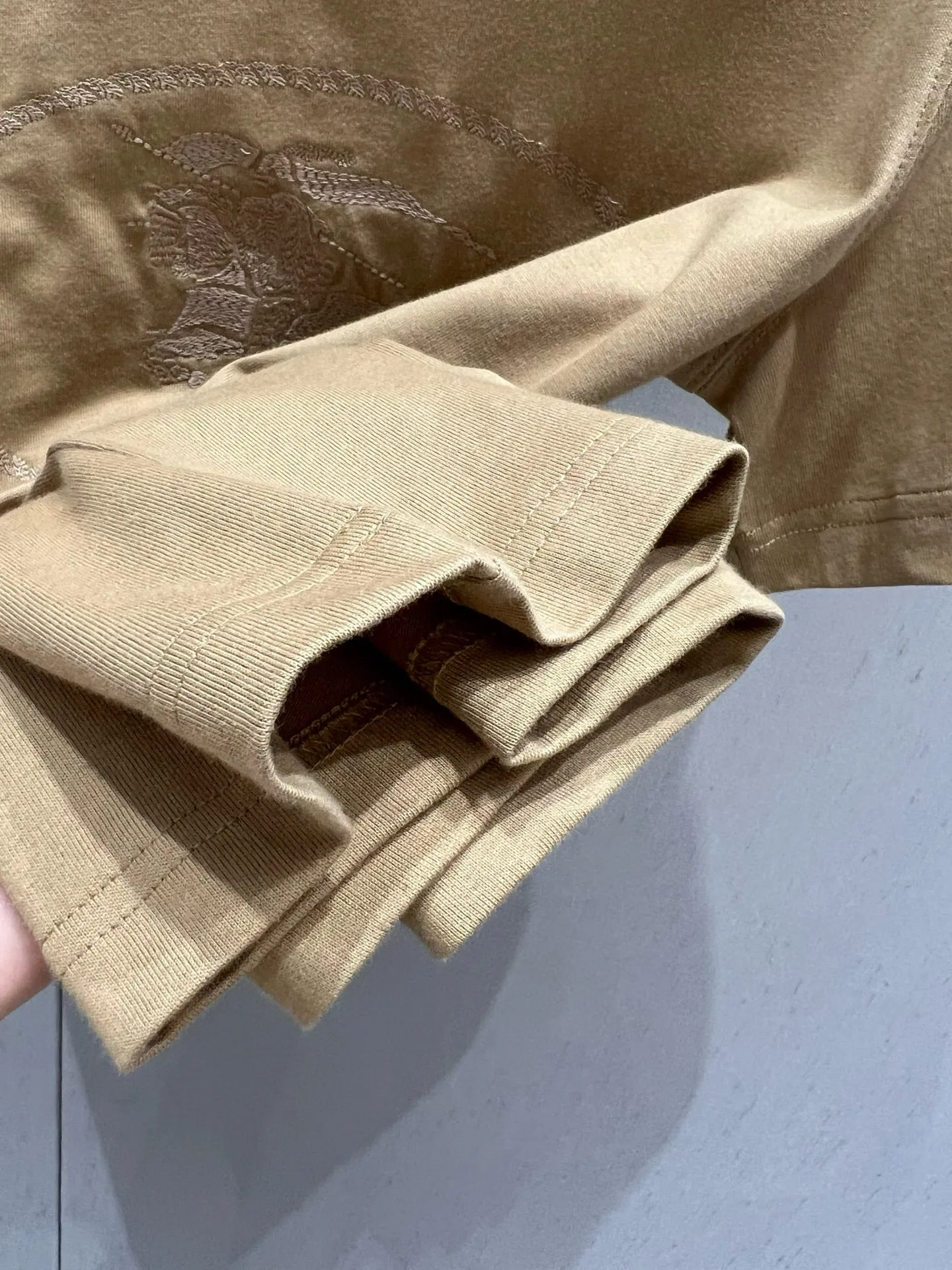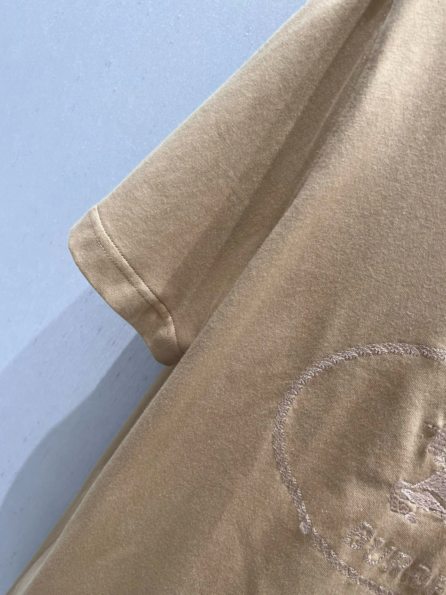 バーバリーの2025年春夏新作、騎士と戦馬の刺繍が施されたカーキプリントの半袖Tシャツです。純 Cotton素材で、着心地が良く、小さめのサイズ感が特徴。インスタ映えするデザインで、どんなスタイルにも合わせやすい一着。街中で注目の的になること間違いなしです。このようなおしゃれな Tシャツ スーパーコピー を探している方にもおすすめです。