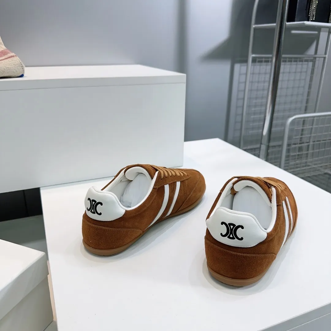 CELINEの2025SSコレクションから登場した茶色系のスニーカーです。高品質なインポート牛革を使用し、通気性のあるメッシュライニングが快適さを提供します。オリジナルのゴムソールでスタイリッシュなデザインを実現。男女兼用で、オリジナルパッケージ付きでお届けします。シンプルで高級感のある一足をぜひ手に入れてください。最新のトレンドを求める方には、スーパー コピー スニーカーもおすすめです。