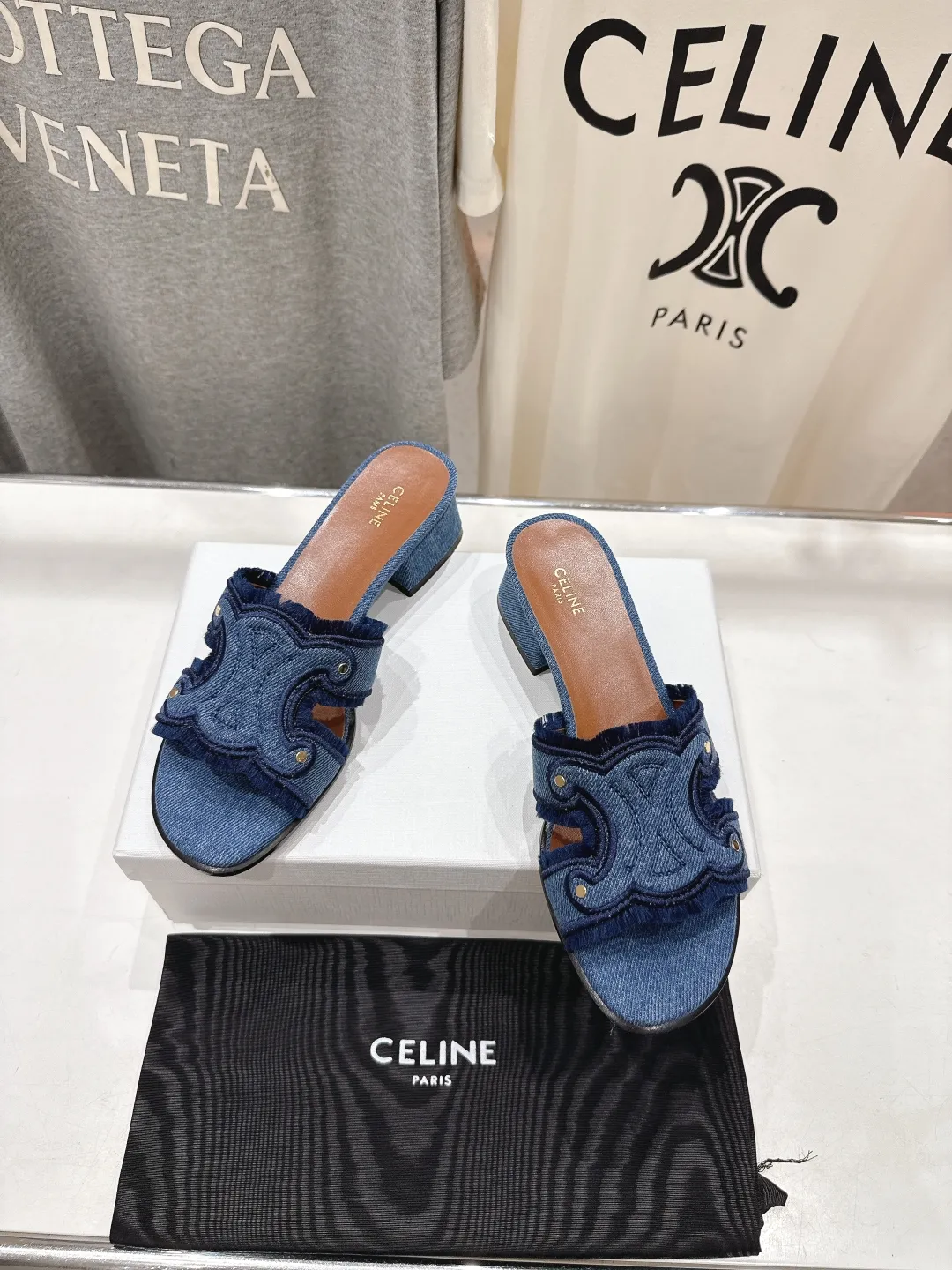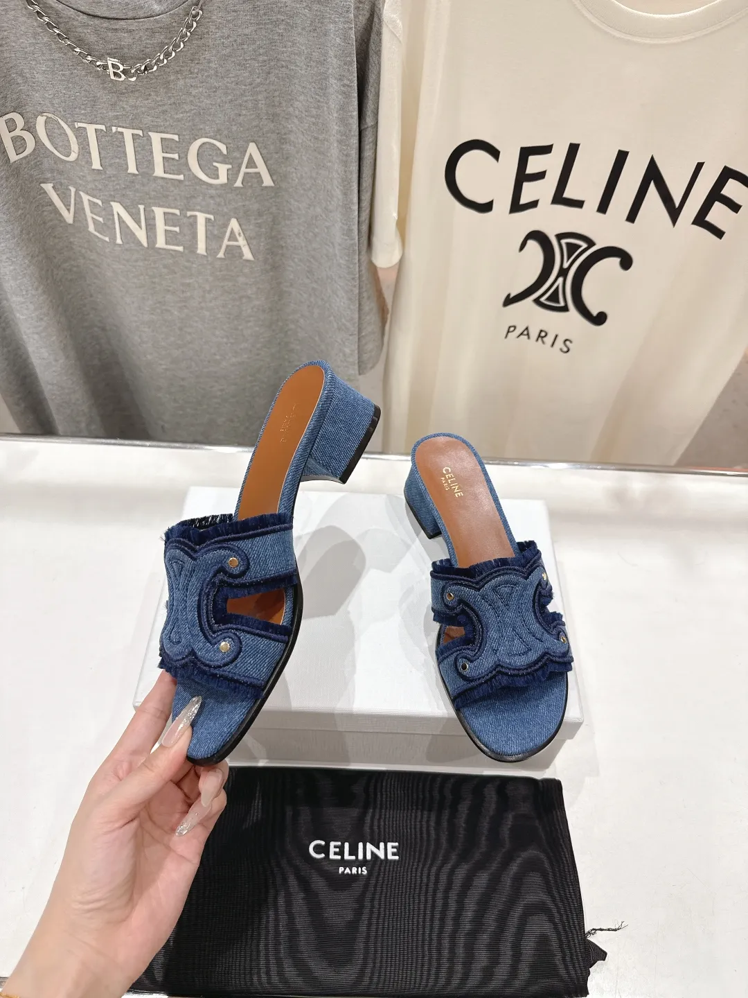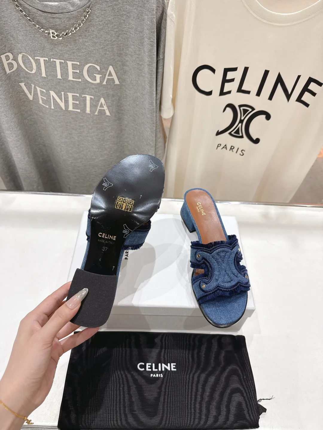 CELINE 2025ss新作凱旋門レトロサンダルブルー