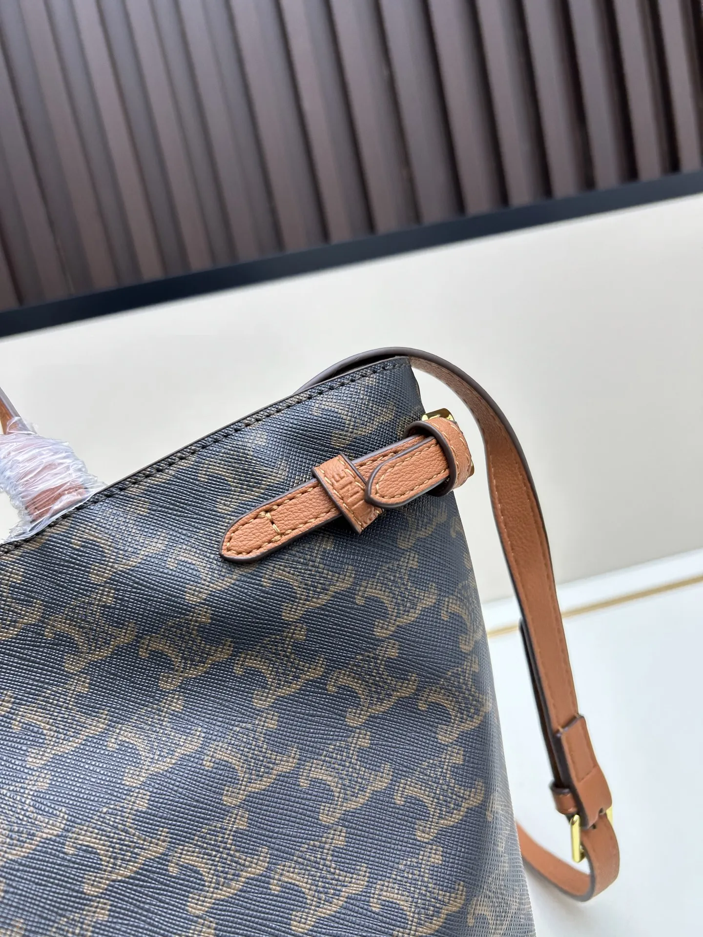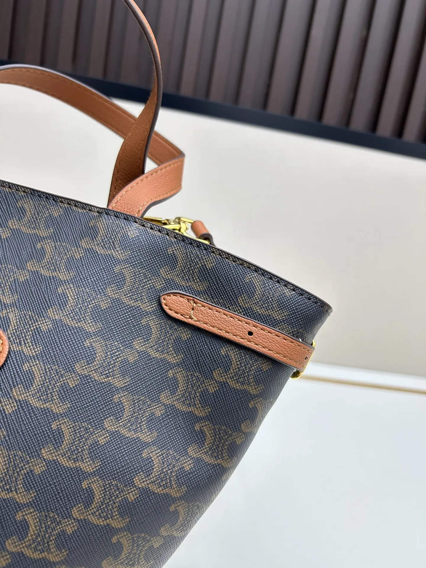 CELINEの凯旋トートバッグは、エレガントで洗練されたデザインが特徴です。ブラウンのカラーとエッフェル塔の金具が視覚的なアクセントを加え、スタイリッシュな印象を与えます。サイズは袋口36cm、底部20cm、高さ19cm、厚さ9cmで、日常使いに最適です。高品質なレザー素材を使用し、耐久性と美しさを兼ね備えています。特別なアイテムをお探しの方には、N級品としても注目される一品です。
