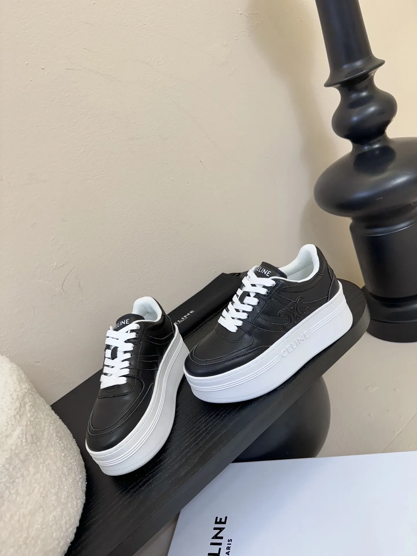 CELINE RUNNER CR-03は、ブラックの厚底スニーカーで、オリジナルレザーアッパーとオリジナルソールを使用しています。シュータンとヒールにはCELINEのロゴが、サイドにはCR-03のロゴが刻印されています。2025春夏の新作で、シンプルで快適な履き心地が特徴です。高さを出すことで脚を細く見せ、どんなスタイルにも合わせやすい一足です。トレンドを押さえたデザインの スーパー コピー スニーカー として、ファッションに敏感な女性におすすめです。