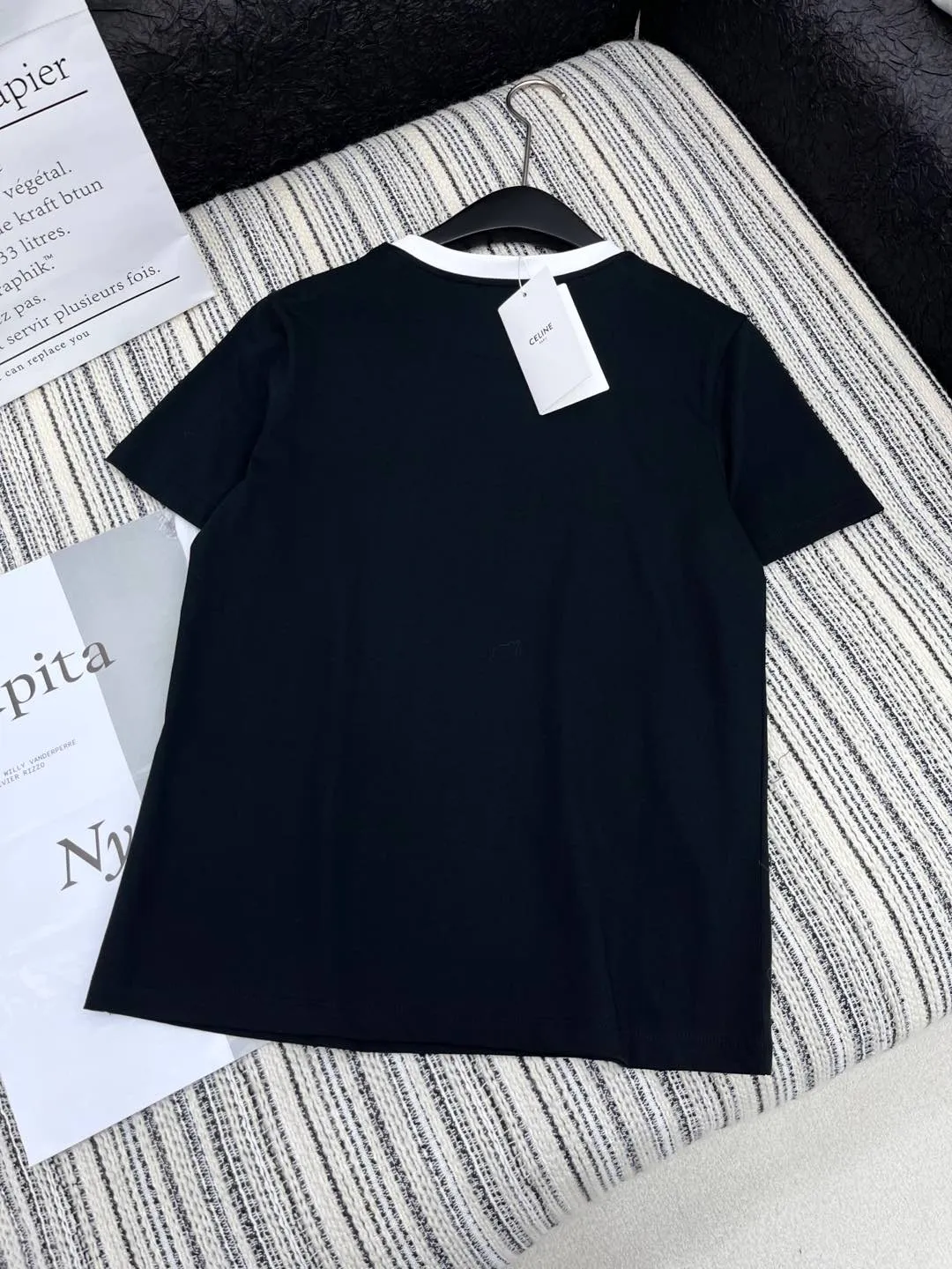 CELINE新作刺繍ロゴカラーマッチングTシャツ白ネイビー