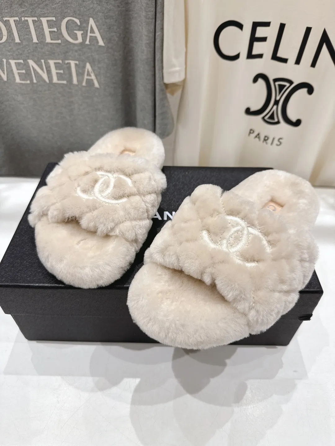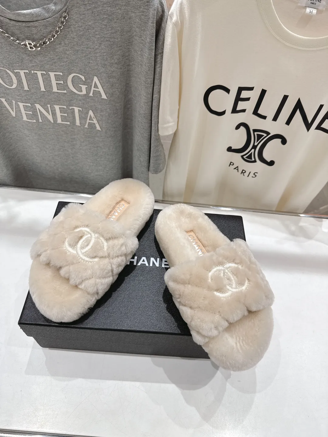 CHANEL 2025SS 新作毛皮のスリッパ ベージュ
